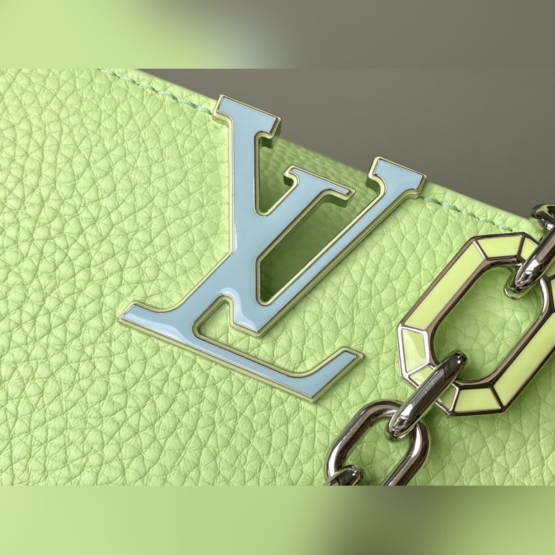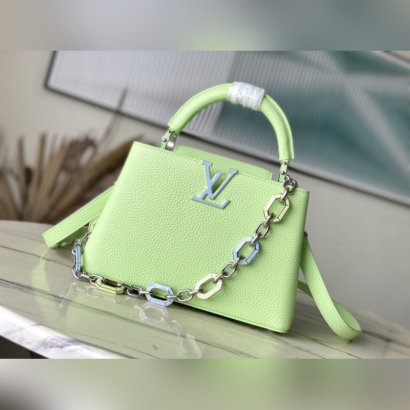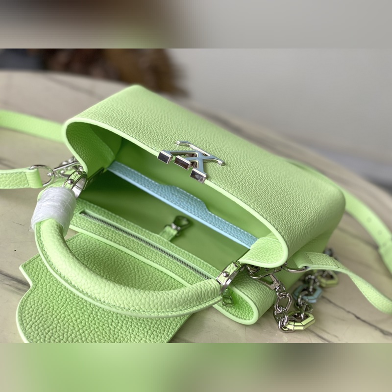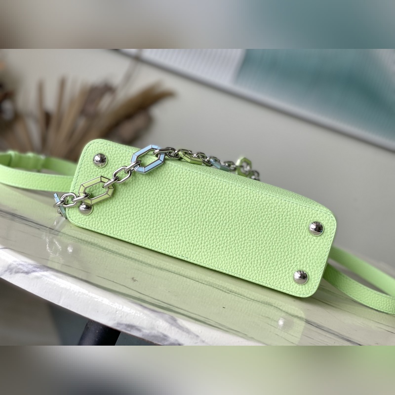 상단 원본 M24683 녹색 소형 이 코카인 BB 가방은 그레인 타우론 가죽으로 만들어졌으며 우아한 에나멜 코팅 링크가 달린 팔각형 체인으로 장식되어 있어 보석 같은 매력을 뽐냅니다. 컴팩트한 디자인으로 스마트폰 긴 지갑 기타 작은 물건을 넣을 수 있습니다. 크기: 27 x 18 x 9cm
