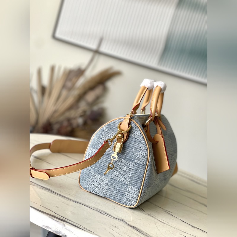 최고의 오리지널 N40700 harrell Williams Damier Denim 3D 코튼 캔버스로 제작된 이 Seedy 25 Bandoullere 핸드백. 패브릭을 잘라 표백하고 염색하여 페이드 효과를 줌으로써 클래식한 체크 패턴에 여름 분위기를 불어넣었습니다. 워싱 마감으로 소재가 약간 수축되어 체크 패턴의 입체적인 질감을 강조합니다. 크기: 25 × 15 × 15cm