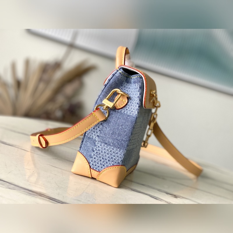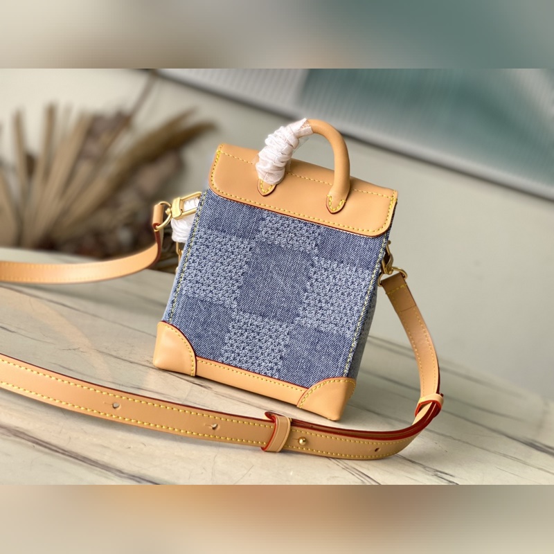 최고 품질의 오리지널 N40751 블루 체크 데님 미니 백 시리즈 이 나노 스티머 백은 20세기 초의 스티머 백에서 영감을 얻어 하렐 윌리엄스가 디자인한 부드러운 다미에 데님 3D 코튼 캔버스로 만든 세련된 도시형 가방입니다. 소가죽 트림 손잡이 어깨 끈이 우아한 디자인을 완성합니다. 크기: 15 x 18 x 7cm