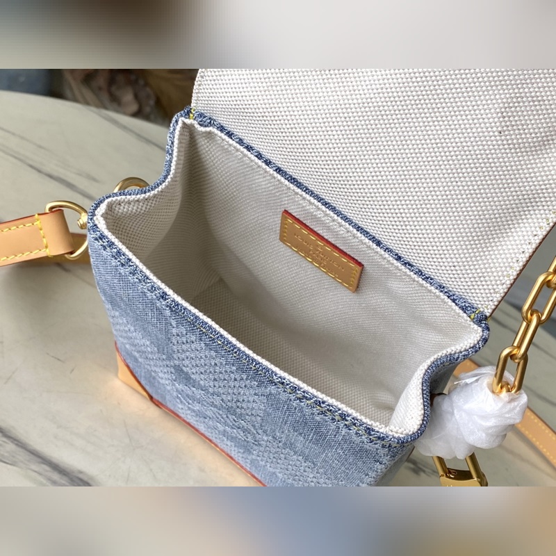 최고 품질의 오리지널 N40751 블루 체크 데님 미니 백 시리즈 이 나