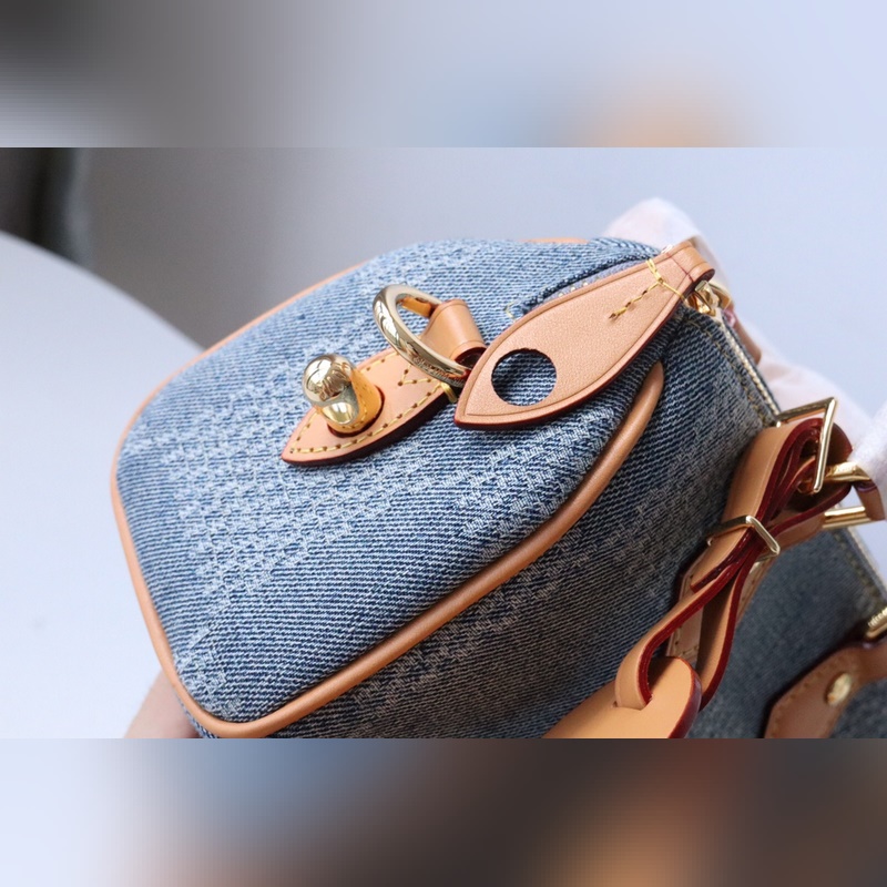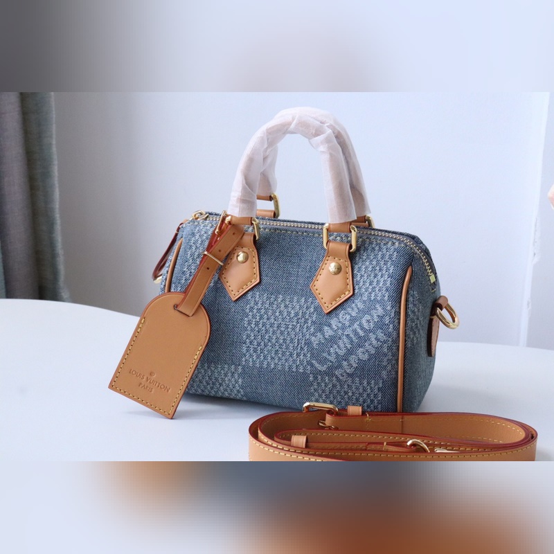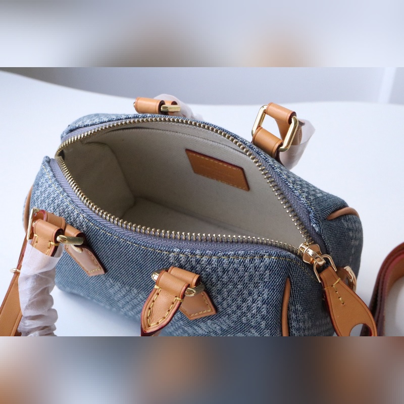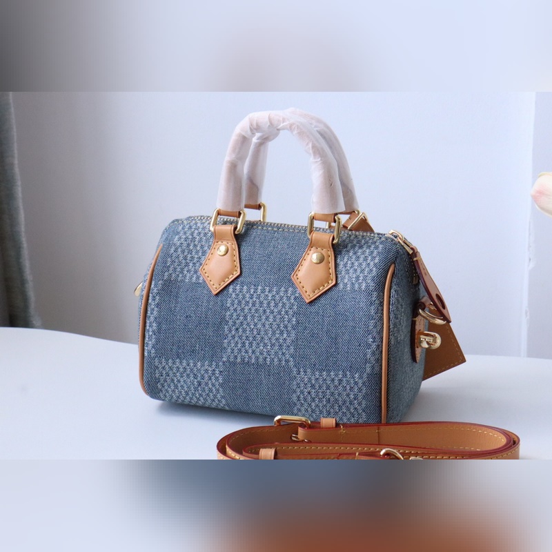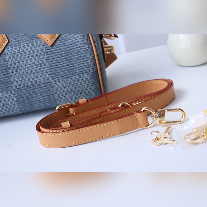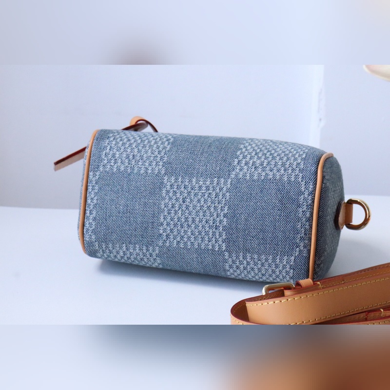 N40682 베개 이 Seedy 18 Bandouli?re 가방은 1930년에 출시된 클래식한 Seedy 여행 가방의 디자인을 압축한 것으로 Damier Denim 3D 코튼 캔버스를 사용하여 상쾌한 여름 분위기를 자아냅니다. 상징적인 체크무늬 패턴은 데님 스타일을 자아내고 소가죽으로 만든 상단 손잡이와 탈부착 및 길이 조절이 가능한 어깨 스트랩으로 크로스 바디 캐리가 용이합니다. 크기: 18*12*10cm