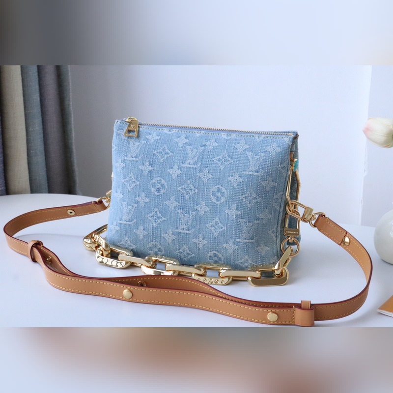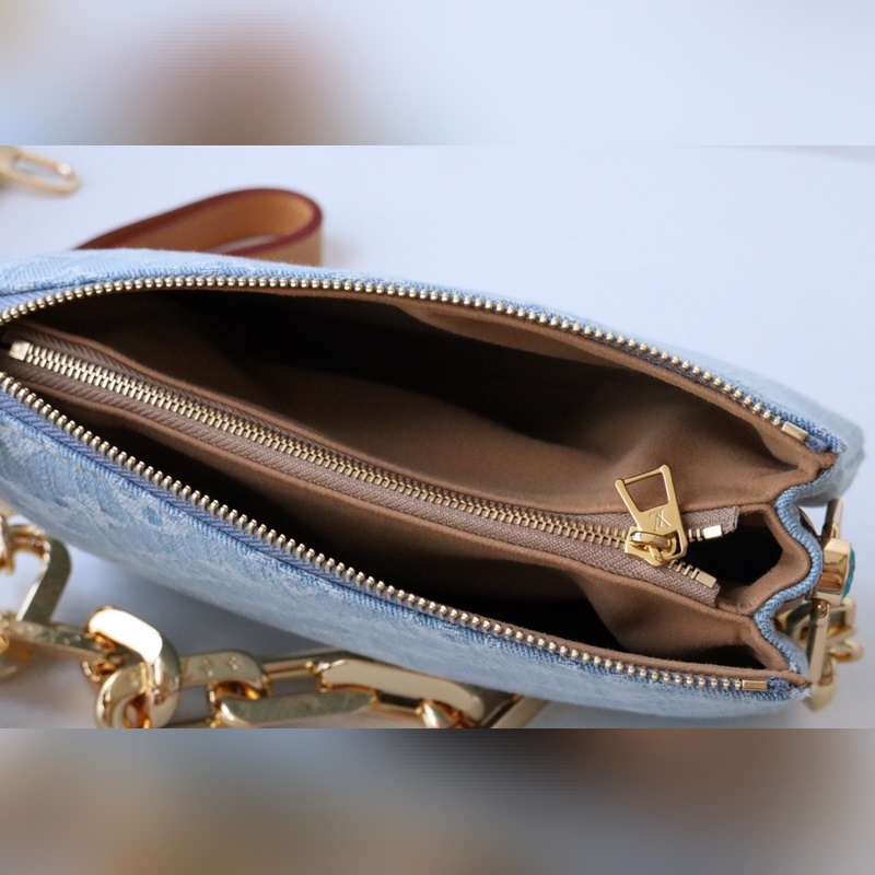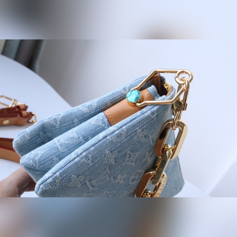 M11401 NANO SEEDY 핸드백 이 나노 씨디 백은 데님 소재에 모노그램 패턴을 더해 빈티지한 느낌을 줍니다. 소가죽 손잡이와 탈부착 및 길이 조절이 가능한 어깨 스트랩은 은은한 빈티지 효과를 줍니다. 쿠샹 BB 모노그램 패턴은 거친 느낌의 각인된 체인과 대조를 이룹니다. 가죽 내부 수납공간은 외출 시 필요한 모든 것을 보관할 수 있어 편리하며 탈부착 가능한 어깨 스트랩을 활용하면 다양한 방법으로 휴대할 수 있습니다. 21 x 16 x 7cm(길이 x 높이 x 너비)
