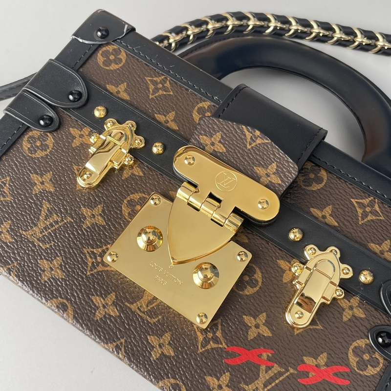 완전 카운터 포장 완료 해외 오리지널 싱글 M46755 전용 리얼 샷! 니콜라 제스키에르(Nicolas Ghesqui?re)는 에티테 말레 카이탈(Etite Malle Caitale) 핸드백에 탑 핸들을 추가하여 복고풍 분위기를 자아냅니다. 모노그램 캔버스와 차분한 트림은 하드 케이스 모양을 만들어 내고 눈부신 S자형 잠금장치 스터드 리벳은 이전 시즌의 도시적 트렌드를 이어갑니다. 탈착식 직조 체인은 여성스러운 느낌을 더해줍니다. 크기: 20×12.5×6cm