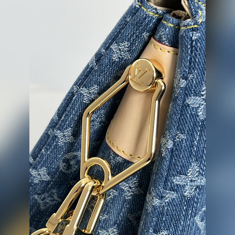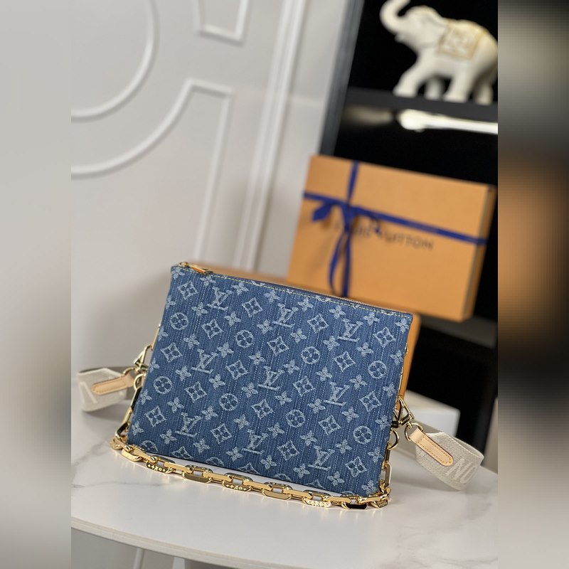 완전 카운터 포장 완료 해외 오리지널 싱글 M24564 독점 리얼 샷! 이 쿠쎌 트럼펫 가방은 새로운 시즌의 코튼 데님 소재를 사용하여 신선하고 우아한 분위기를 자아내며 표백과 샌드워싱 공정을 통해 독특한 느낌을 줍니다. 이름 패턴이 있는 탈착식 러프 체인과 넓은 패브릭 숄더 스트랩이 조화를 이루며 가벼운 운반 경험을 한 차원 더 업그레이드합니다. 크기: 26×20×12cm