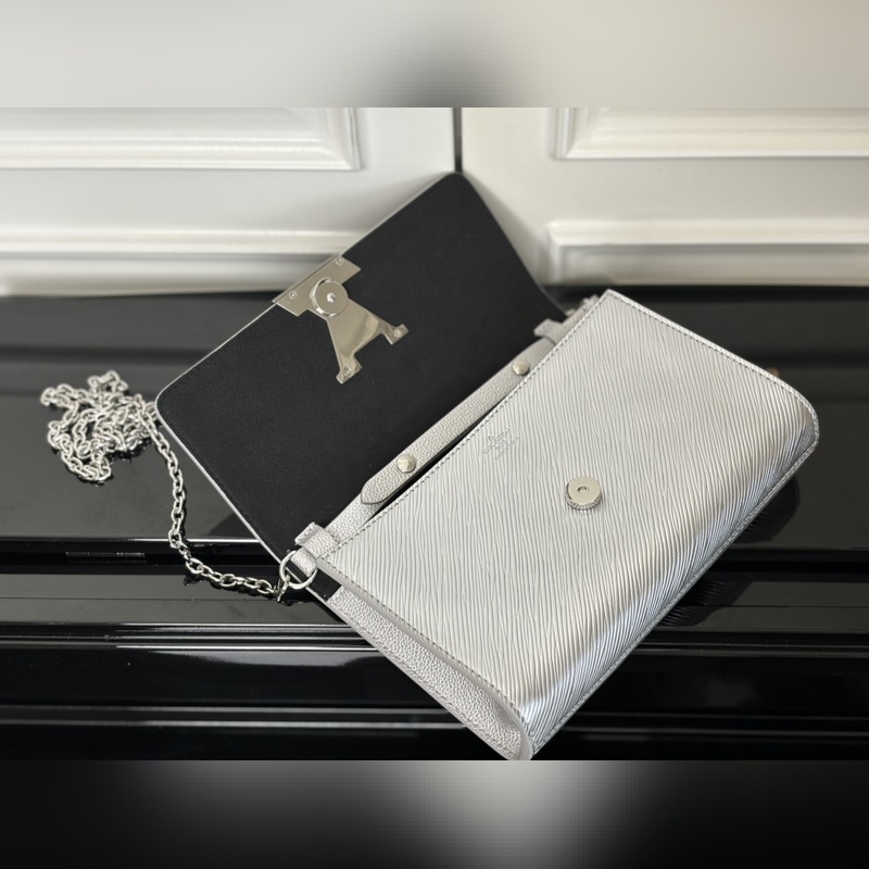 M237 실버 블랙 [최고 품질의 원본] 동적 코드 카운터 싱크 전자 칩 코드 이 오첼트 루이스 체인 백은 새로운 시즌을 위해 새로운 비율로 클래식한 디자인을 재창조합니다. 정교함 반짝이는 에이 가죽 또는 세련되고 차분한 무광택 가죽으로 제작되어 소지품을 안전하게 보관할 수 있으며 야간 외출 시 좋은 동반자가 되어 줍니다. 반짝이는 체인을 이용해 어깨에 매거나 손에 들고 우아하게 휴대할 수 있습니다. 22 x 14 x 5
