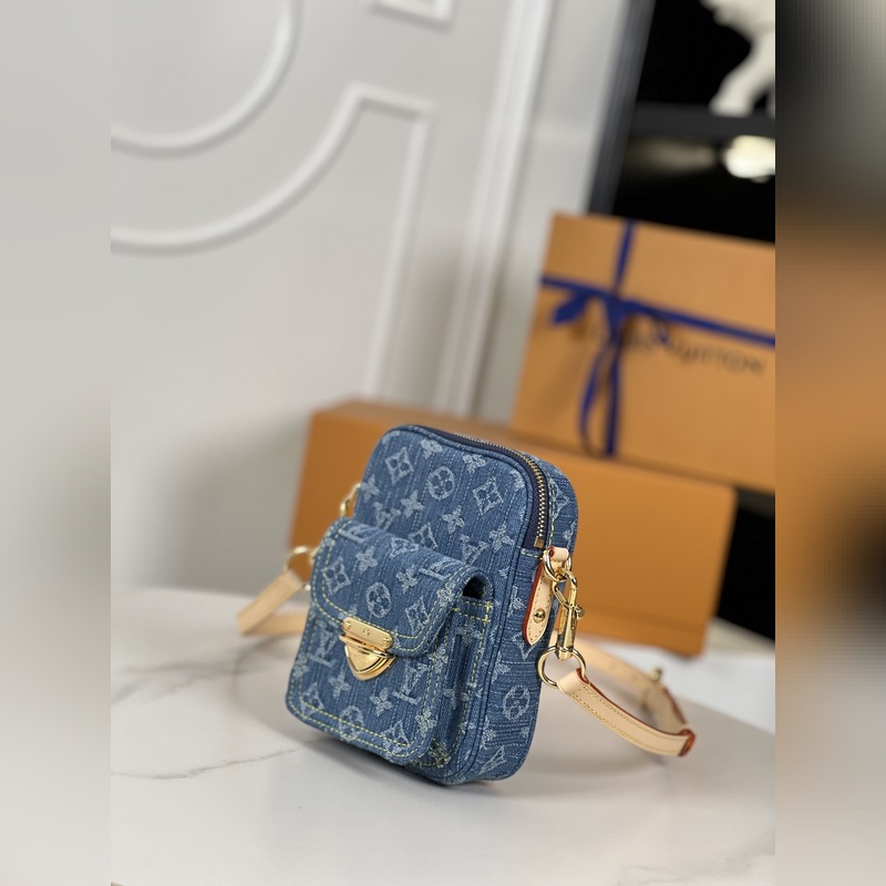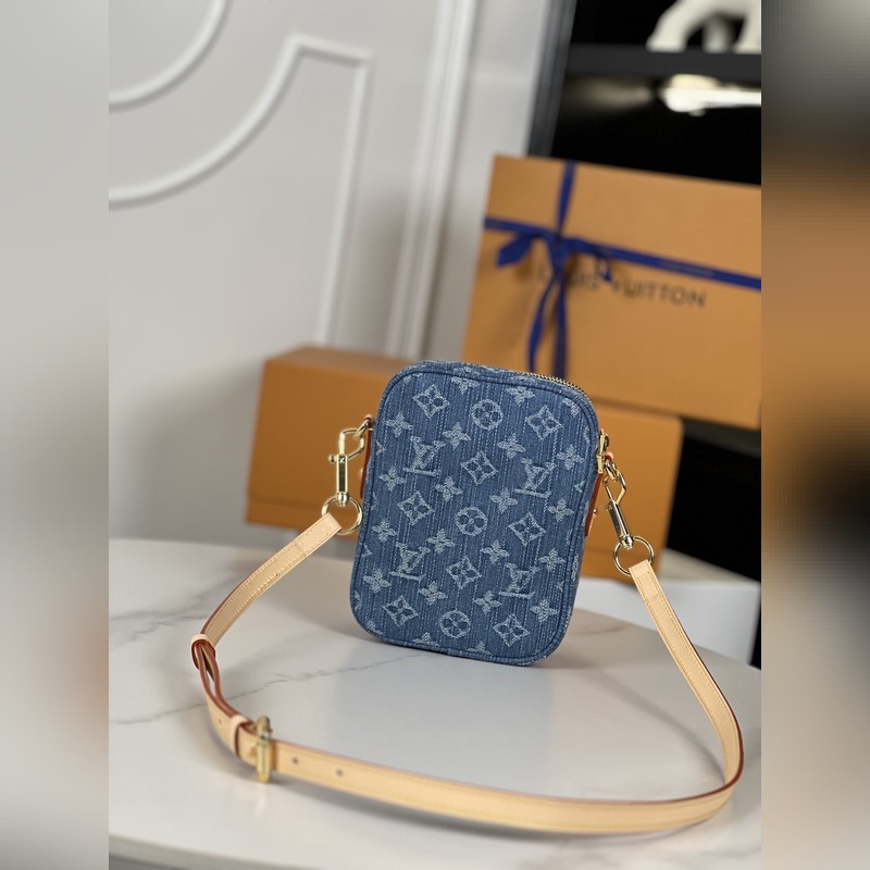 완전한 카운터 패키징으로 완성 해외 오리지널 싱글 M82948 독점 리얼 샷! 페어팩스 오셰트 클러치 백은 모노그램 데님 샌드워시 캔버스 소재에 탈착식 가죽 숄더 스트랩이 달려 있습니다. 지퍼가 달린 메인 수납공간과 스냅 버튼이 달린 앞쪽 포켓이 있어 아이폰 카드 수납공간 립스틱 열쇠 등을 쉽게 보관할 수 있습니다. 크기: 18×14×2.7cm