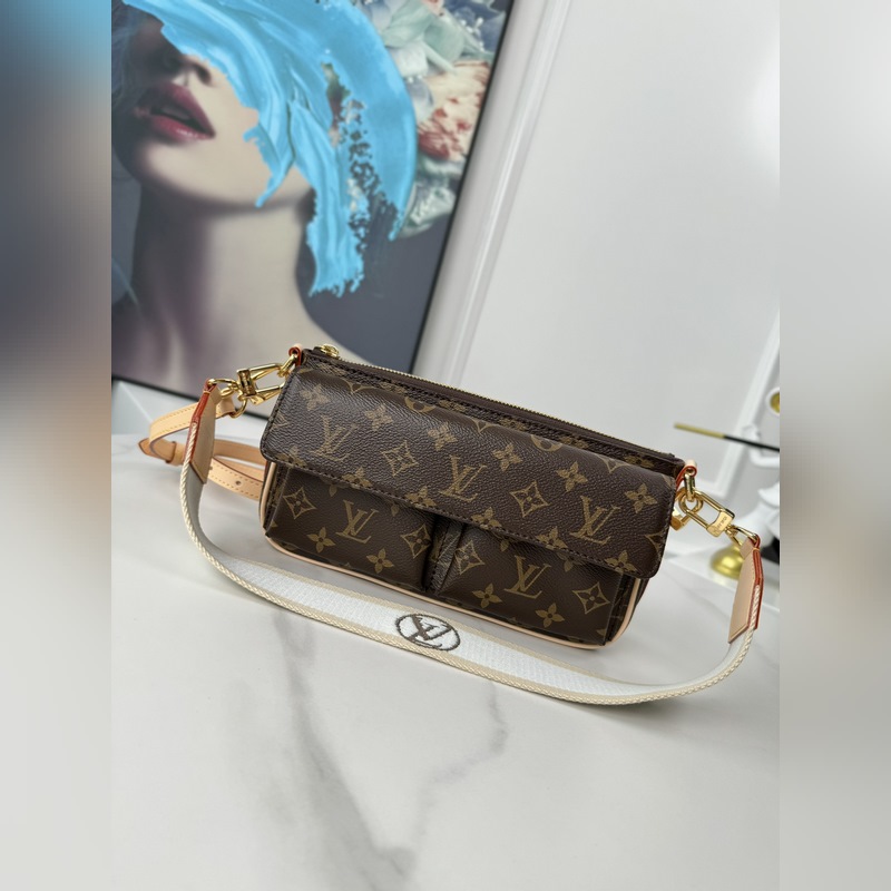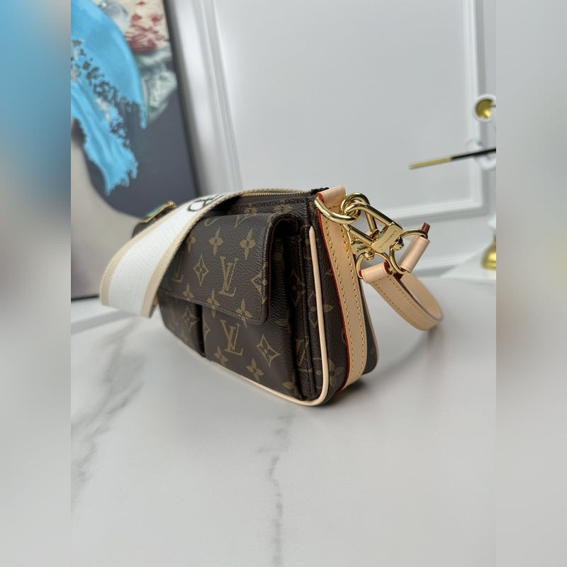 완전한 카운터 패키징으로 완성 해외 오리지널 싱글 M46999 독점 리얼 샷! 바이브 백은 2003년 브랜드가 만든 비바 시테 백에서 영감을 받아 컴팩트한 모노그램 캔버스 형태로 제작되었습니다. 내부 및 외부 포켓의 디자인은 일상적인 사용에 적합하며 가죽 숄더 스트랩과 LV 서클 로고가 있는 패브릭 쇼트 숄더 스트랩을 사용하여 다양한 방법으로 휴대할 수 있습니다. 크기: 25×15×8cm
