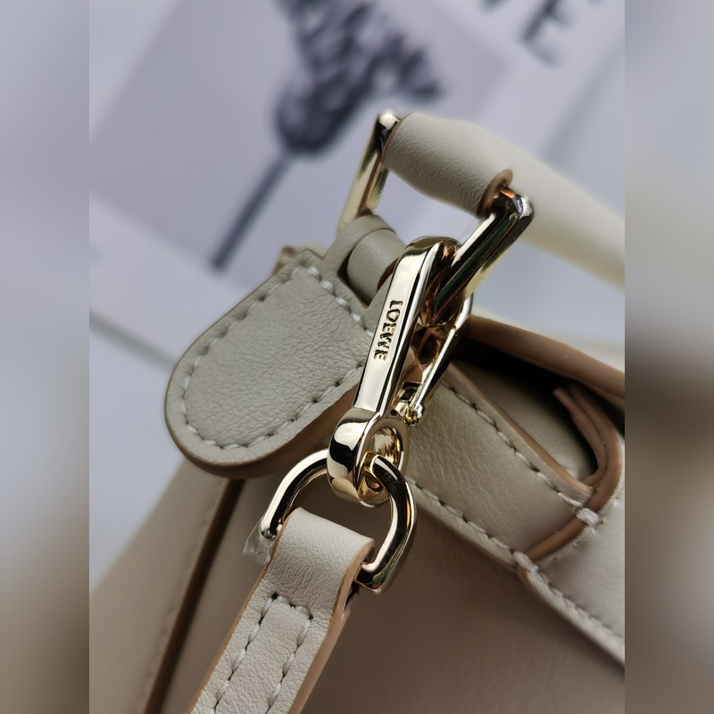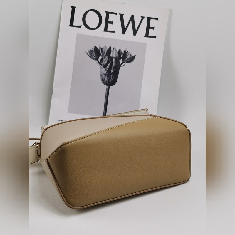 천연 가죽 클래식 소가죽 미니 퍼즐 핸드백 1색 색상: 회색 베이지/금색 퍼즐 핸드백은 크리에이티브 디렉터 조나단 앤더슨이 LOEWE를 위해 만든 최초의 핸드백입니다. 직육면체 모양과 정교한 재단 기술로 퍼즐만의 독특한 기하학적 라인을 만들어 냅니다. 이 미니 버전은 클래식한 소가죽으로 만들어졌습니다. 미니 퍼즐 가방에는 작은 수직 지갑 대부분의 휴대폰(최대 6.1인치) 선글라스 케이스를 넣을 수 있습니다. 어깨에 메거나 크로스 바디로 메거나 손에 들거나 클러치처럼 사용할 수 있습니다. 탈부착이 가능한 조절식 어깨 스트랩 어깨끈과 개인화된 장식으로 맞춤 제작 가능 헤링본 무늬 면 캔버스 안감 아나그램 엠보싱
