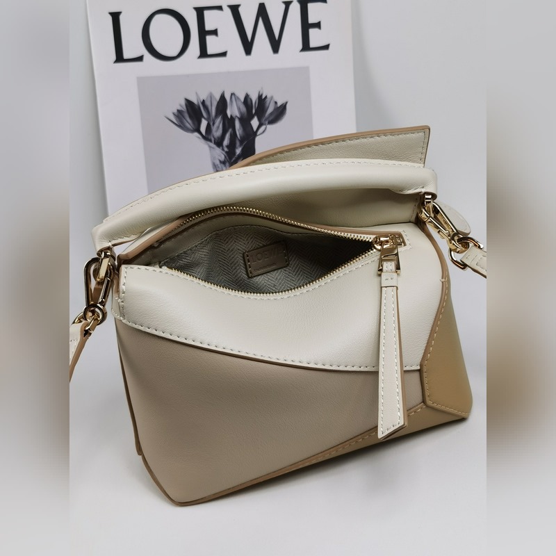 천연 가죽 클래식 소가죽 미니 퍼즐 핸드백 1색 색상: 회색 베이지/금