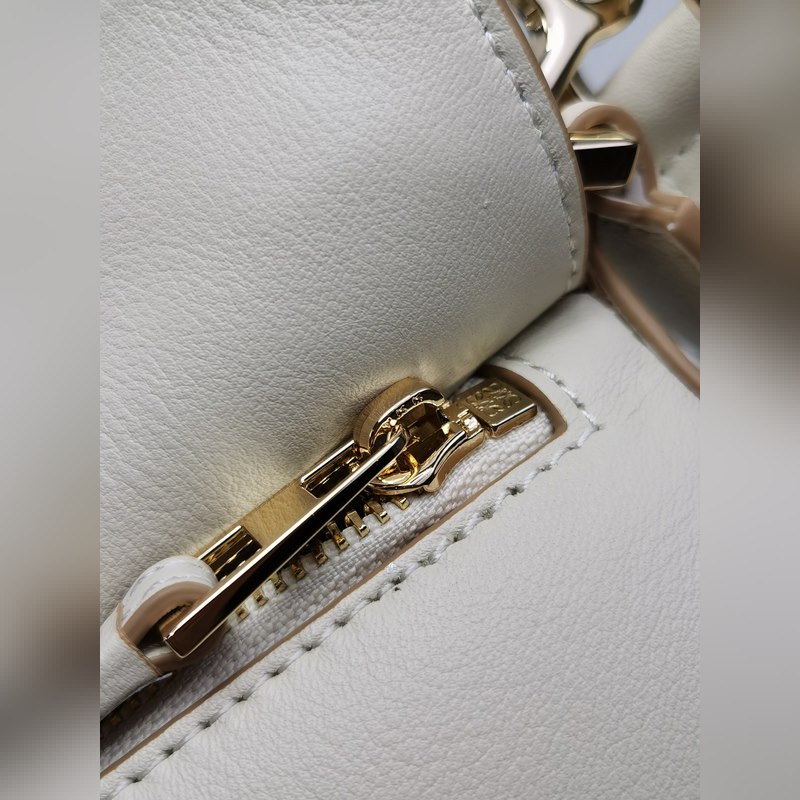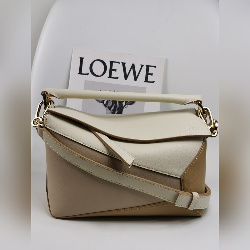 오리지널 소가죽 퍼즐 핸드백 3001B 24cm 1색 색상: 회색 베이지/금색 퍼즐 핸드백은 크리에이티브 디렉터 조나단 앤더슨이 LOEWE를 위해 만든 최초의 핸드백입니다. 직육면체 모양과 정교한 재단 기법이 퍼즐의 독특한 기하학적 라인을 만들어 냅니다. 이 작은 핸드백은 클래식한 소가죽으로 만들어졌으며 겹치는 가장자리가 특징입니다. 작은 퍼즐 가방은 큰 지갑 휴대폰 선글라스를 넣을 수 있습니다. 어깨에 메거나 몸에 걸치거나 손에 들거나 탈부착이 가능한 조절식 어깨 스트랩 소가죽으로 만든 지퍼 잠금장치 외부 지퍼식 뒷주머니와 내부 슬립 포켓 어깨끈과 개인화된 장식으로 맞춤 제작 가능 헤링본 무늬 면 캔버스 안감 아나그램 엠보싱