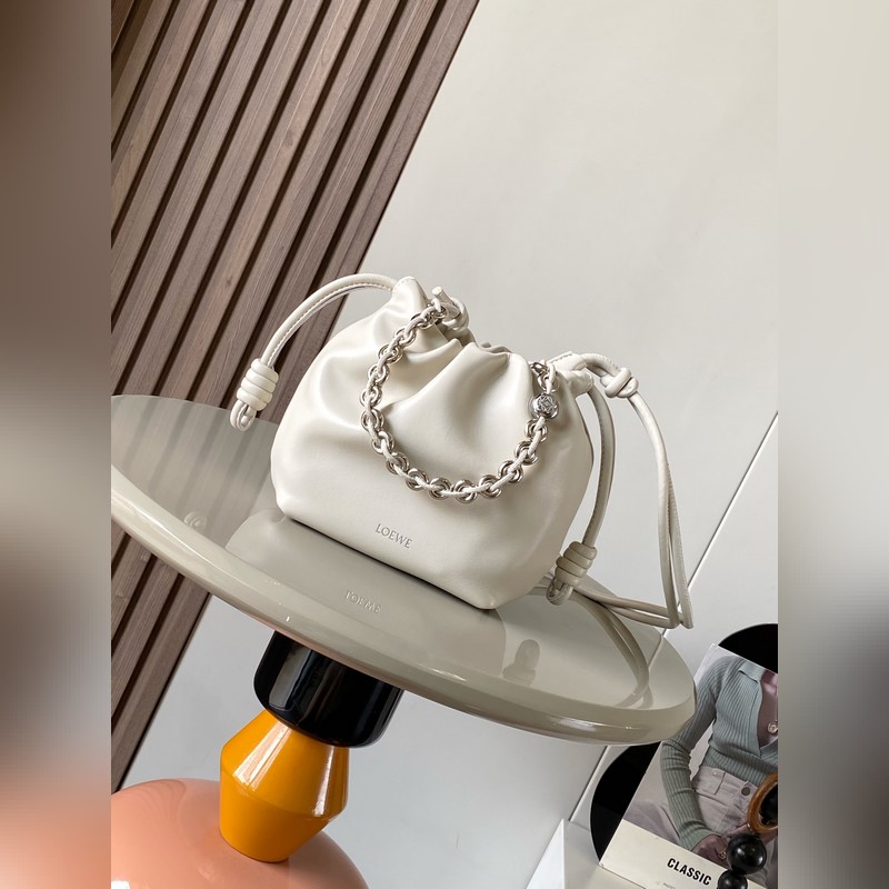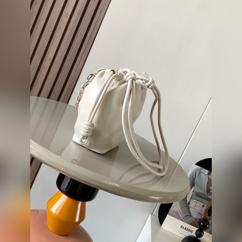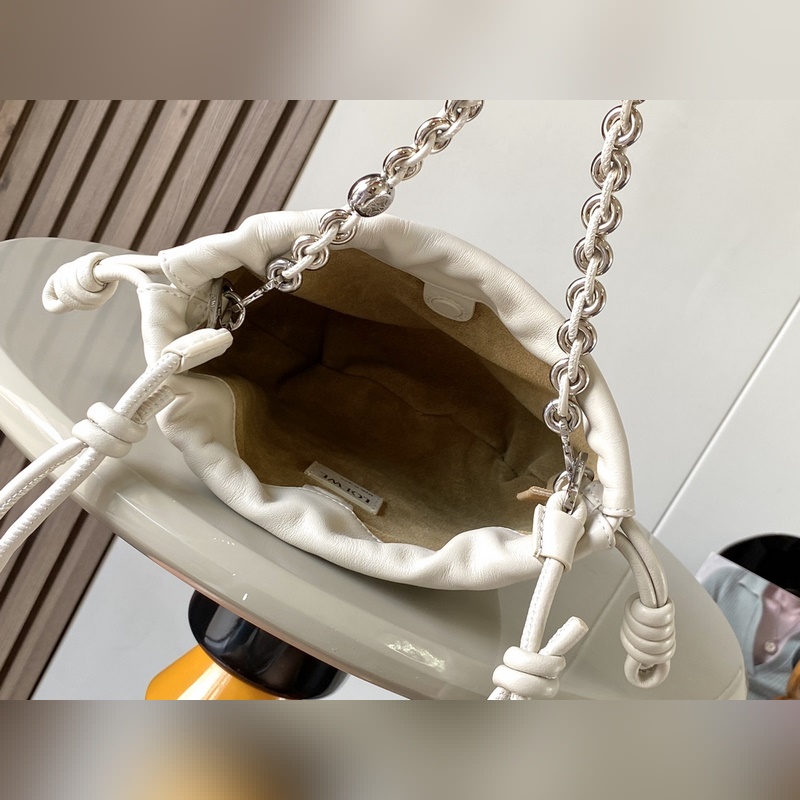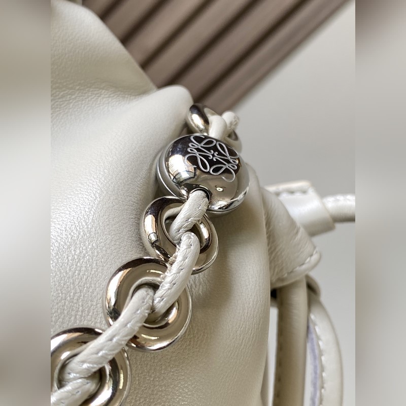 천연 가죽 [유명인과 동일] 미니 나파 양가죽 플라멩코 지갑 새로운 클러치 백 플라멩코 지갑 핸드백은 측면의 주름 디자인과 시그니처 매듭과 같은 주요 특징을 갖추고 있습니다. 세련되고 다재다능한 이 제품은 클러치 백으로 도넛 체인 숄더백 또는 가죽 숄더 스트랩 크로스바디 백으로 휴대할 수 있습니다. 이 버전은 부드러운 나파 양가죽으로 제작되었습니다. * 어깨에 메거나 크로스 바디로 메거나 손잡이로 잡을 수 있습니다 * 탈부착이 가능한 가죽 어깨 스트랩 * 아나그램이 새겨진 자갈로 장식된 탈부착이 가능한 도넛 체인 * 절제된 디자인의 자석 걸쇠 잠금장치 * 스웨이드 안감 * 금색 또는 은색으로 핫 스탬핑된 LOEWE 로고 모델 번호: 9058 크기: 23cm~17cm~5.5cm 색상: 흰색