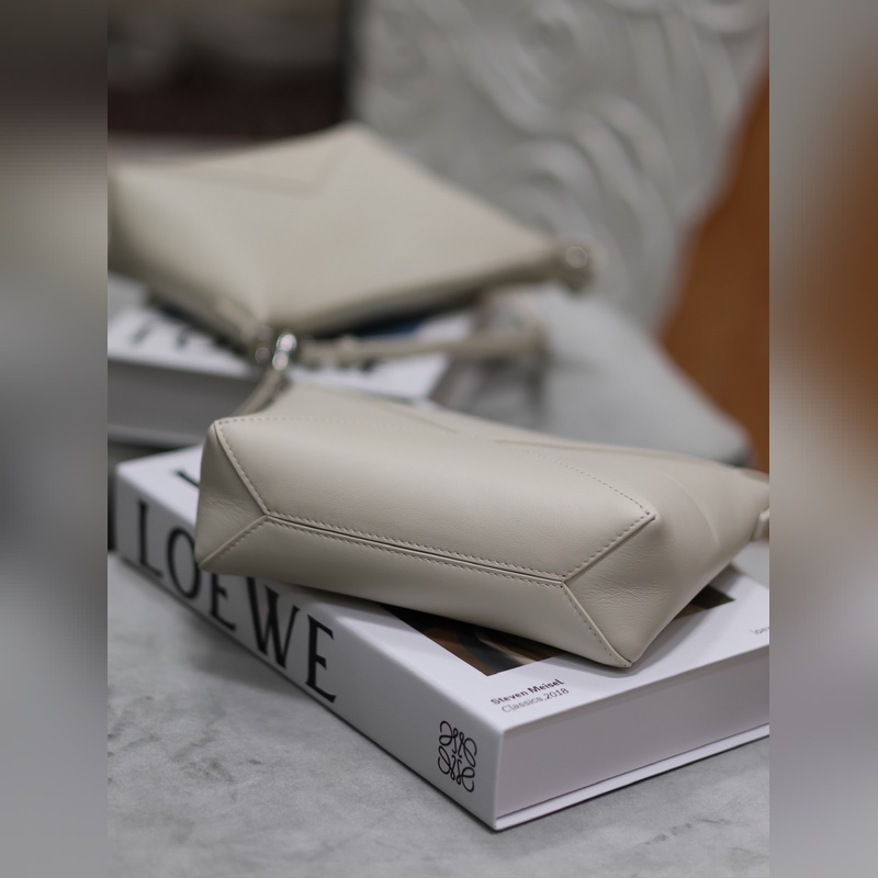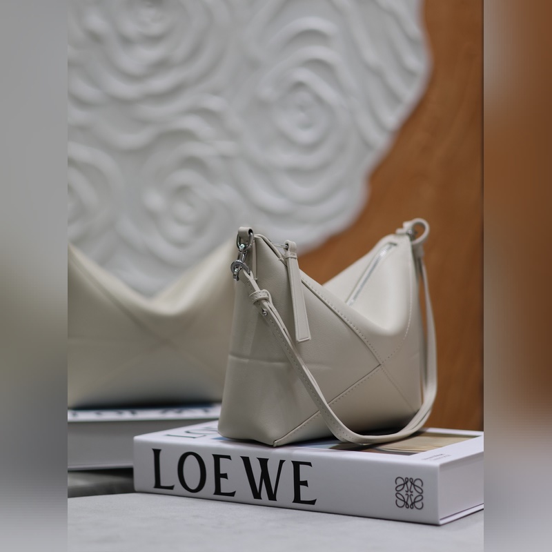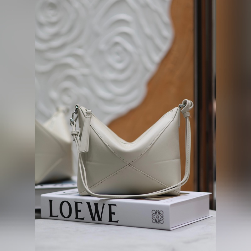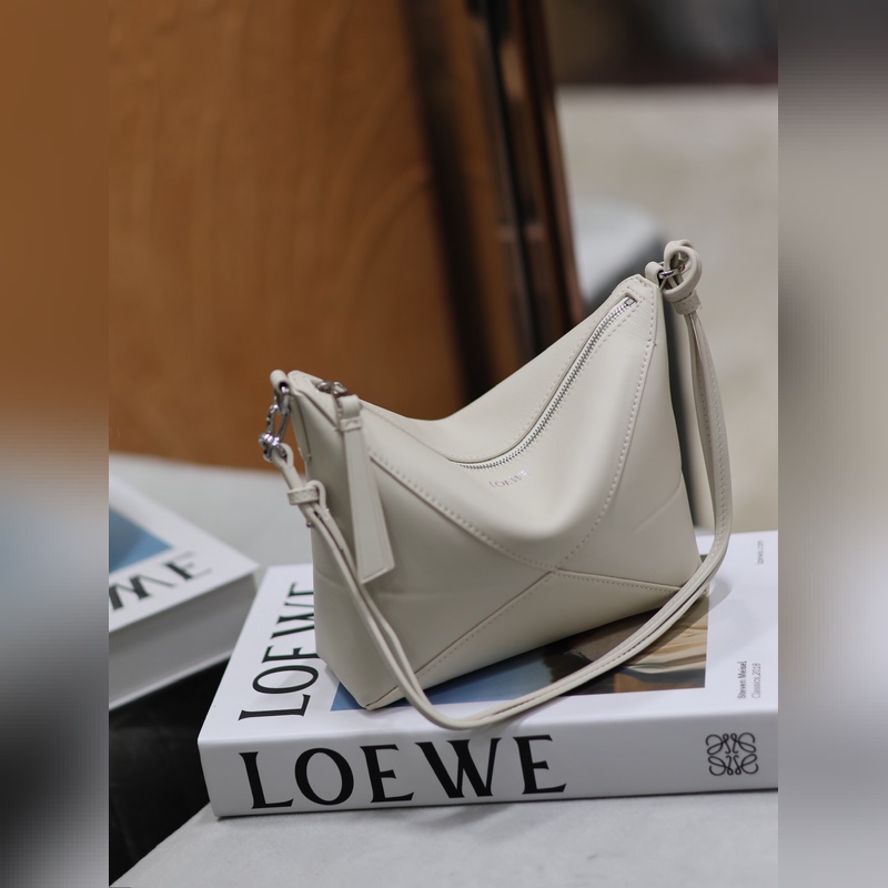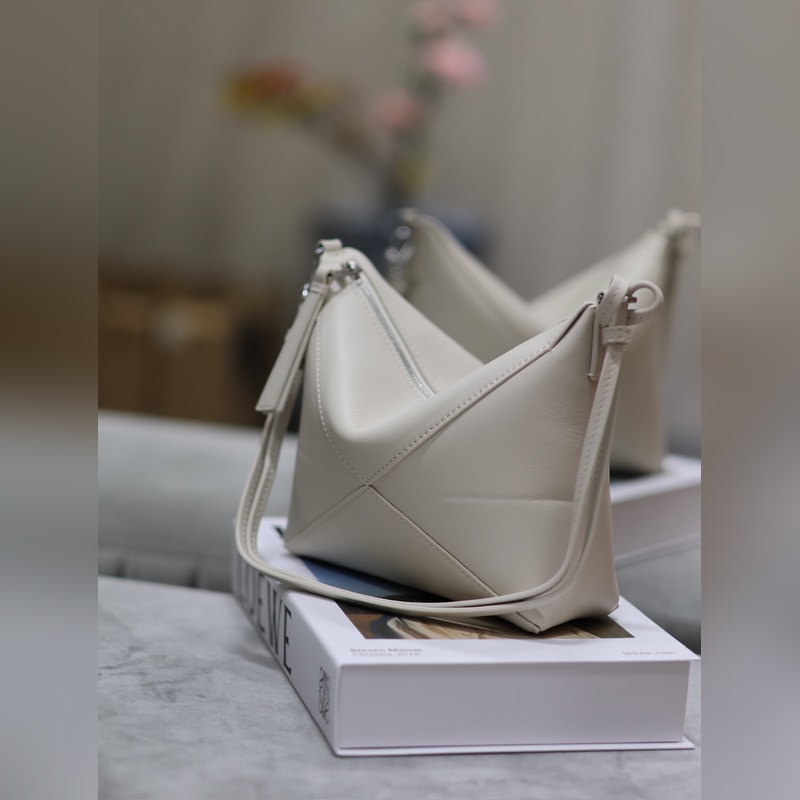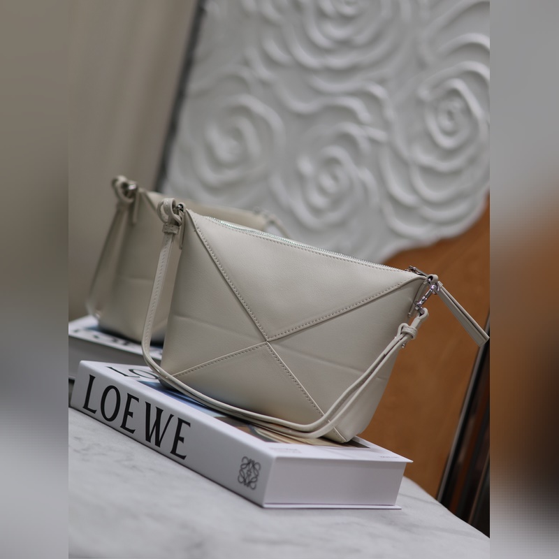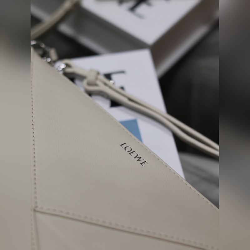 천연 가죽 L ewe 광택 나파 가죽 퍼즐 폴드 클러치 백 Sea Salt White 퍼즐 폴드 백은 실용적이고 다재다능한 클러치 백을 재해석한 제품입니다. 이 제품은 브랜드의 클래식 핸드백의 기하학적 라인에서 영감을 얻어 그래픽적인 건축적 아름다움으로 재해석했습니다. 이 가방은 광택이 있는 나파 가죽으로 만들어졌습니다. 숄더백 크로스백 또는 다른 가방 안에 넣을 수 있습니다. 탈부착 및 길이 조절이 가능한 어깨 스트랩 지퍼로 여미는 방식 스웨이드 안감 LOEWE 핫 스탬핑 모델: 5101/ 크기: 23*6.5*15.5cm