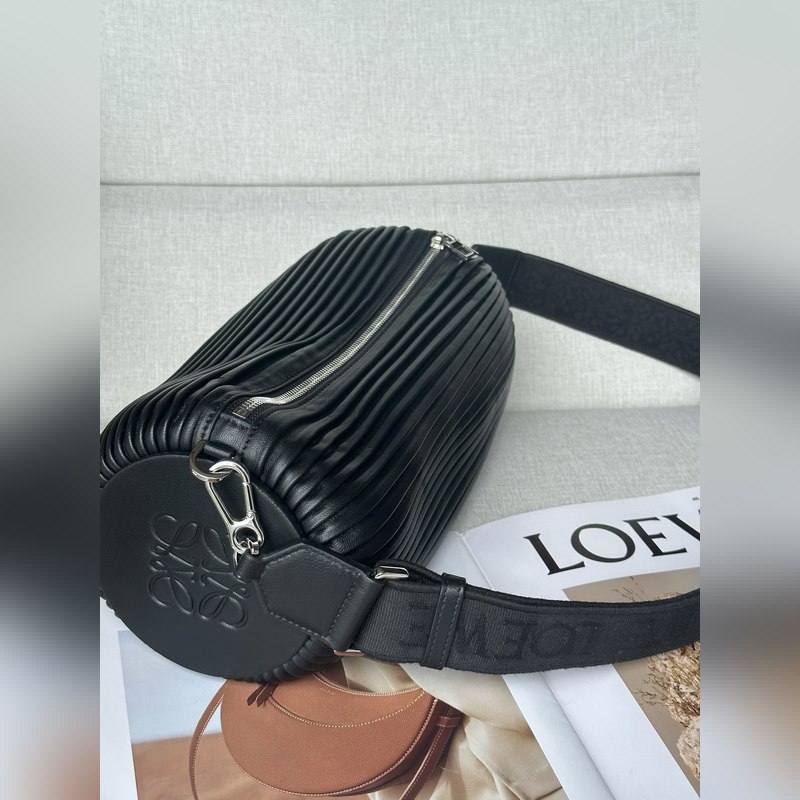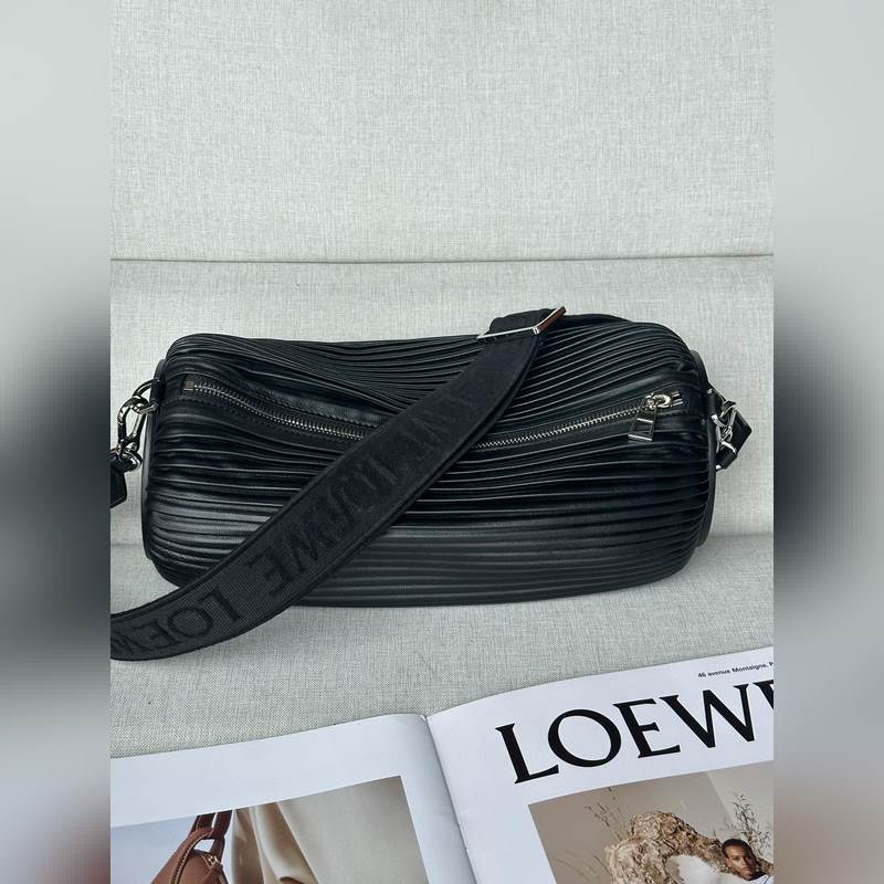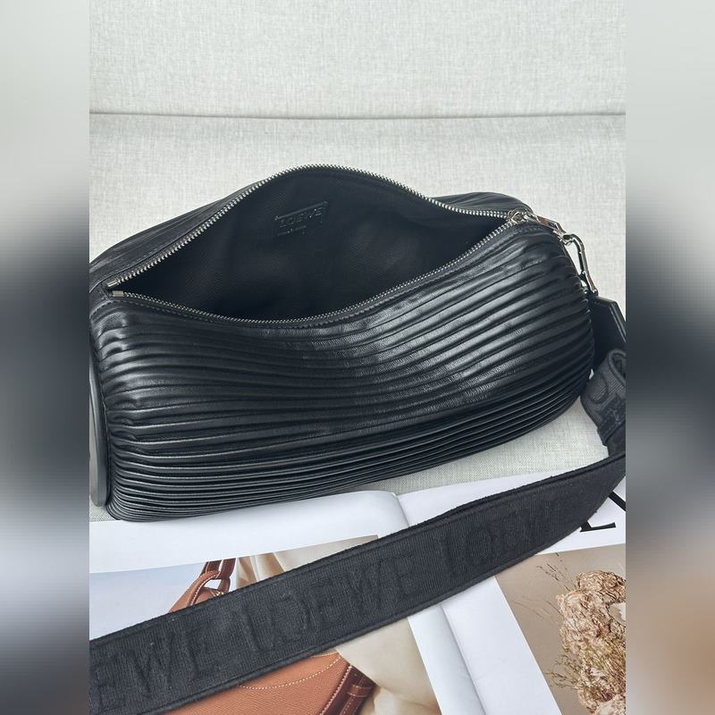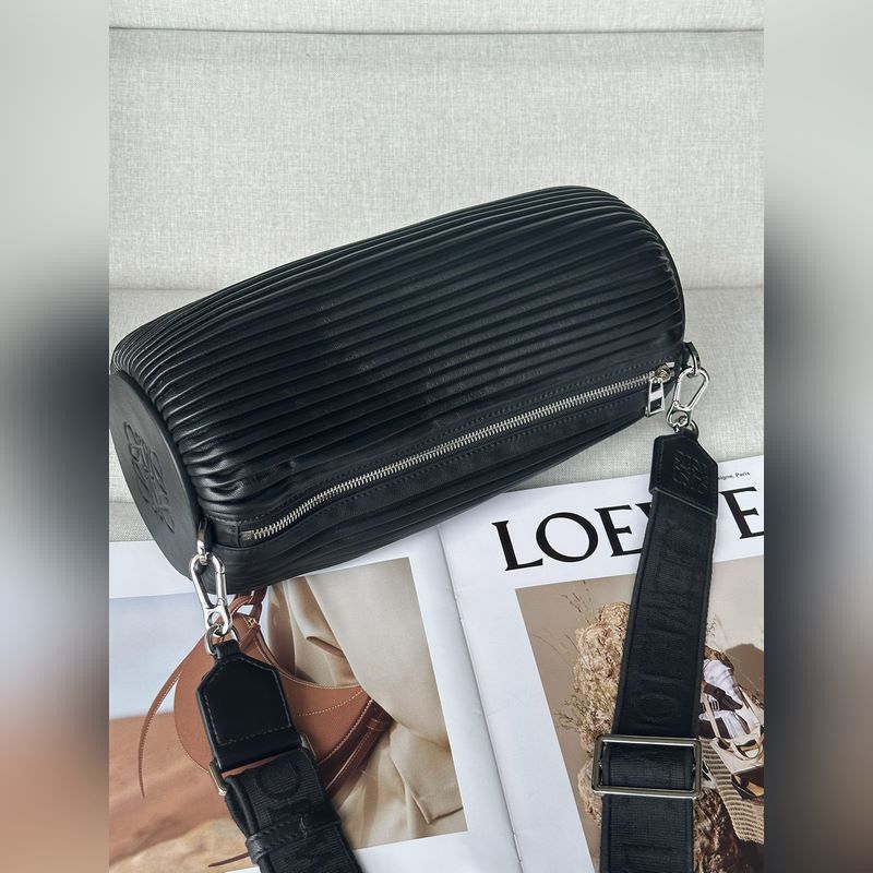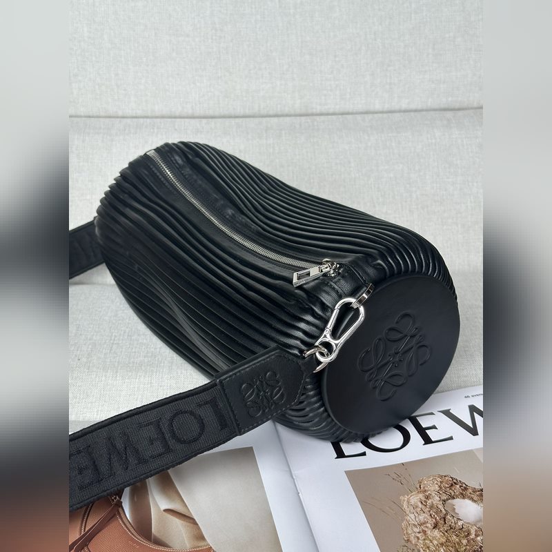 오리지널 가죽 로에베 2025 가을과 겨울 큰 주름 나파 가죽 팔찌 가방 모델 9752(넓은 웨빙 포함) 29-14.5-18cm 다기능 튜브형 파우치 플리츠 나파 가죽 소재. 이 버전은 자카드 직물과 같은 색상의 어깨 끈이 있고 끝부분에 같은 색상의 가죽 이름표가 달려 있습니다. 어깨에 메거나 몸에 걸치거나 손에 들 수 있습니다. 탈부착 및 길이 조절이 가능한 어깨 스트랩 지퍼로 여미는 방식 같은 색상의 면 캔버스 안감 아나그램 엠보싱