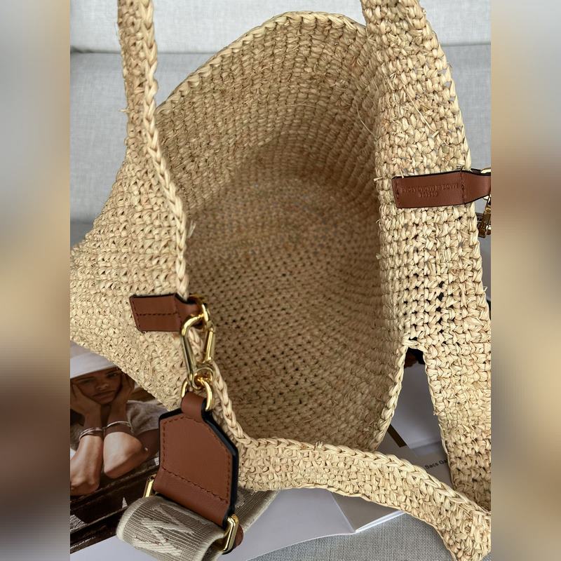 원래 가죽에 넓은 갈색 직조 스트랩) 손으로 짠 라피아와 소가죽 슬릿 핸드백(신상) 모델 0013 다용도 슬릿 토트백은 부드러운 손으로 짠 라피아 소재의 상단 손잡이와 본체로 구성되어 있습니다. 이 미니 버전에는 자카드 어깨끈이 포함되어 있습니다. *손으로 들거나 어깨에 메고 운반할 수 있습니다. 탈부착 및 길이 조절이 가능한 어깨끈 *안감이 없는 아나그램 엠보싱 패치. 사진 촬영에 꼭 필요한 아이템으로 멋지게 보입니다. [유혹하다] [유혹하다] [유혹하다] l 사이즈: 29-28-7cm