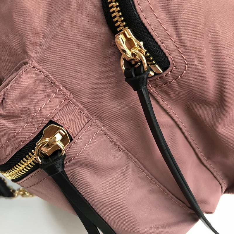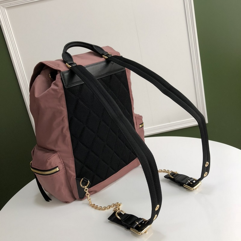 최고급 【체인 대형 금색 버클】 「The Rucksack 군용 배낭」은 패션쇼의 주요 액세서리로 가벼운 디자인과 방수 기능을 갖추었습니다. 어깨 끈은 편안한 패딩 디자인으로 제작되었습니다. 배낭은 상징적인 Bur Trench 코트의 독특한 소재에서 영감을 받아 면 소재의 가바딘과 동일한 밀집 구조의 유연하고 튼튼한 나일론 소재로 제작되었습니다. 부드럽고 캐주얼한 백 디자인은 20세기 초반 역사적 기록물에 등장하는 군용 스타일을 바탕으로 하며 여기에 다기능 지퍼 포켓을 추가했습니다. 28 x 15 x 42cm