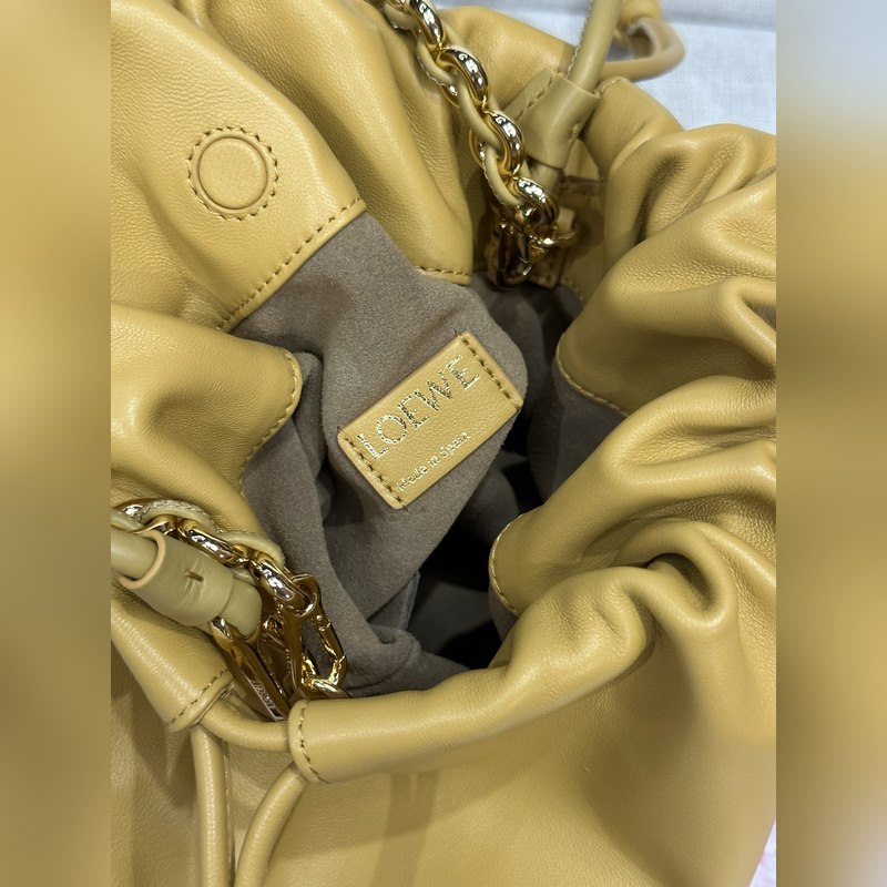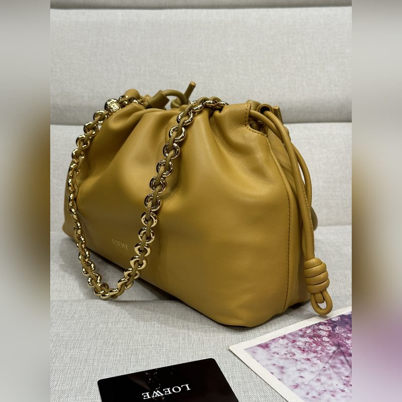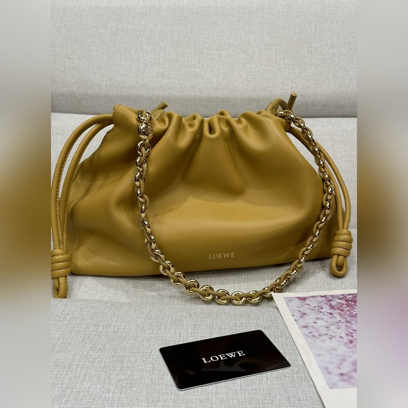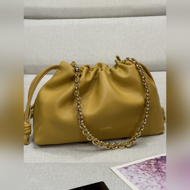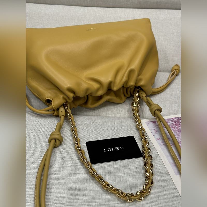 정품 가죽 신품 1774 (금속 체인 + 롱 숄더 스트랩 1개 포함) 부드러운 나파 가죽 플라멩코 지갑 클러치 백 대형 30-10.5-20 플라멩코 지갑 클러치백은 주름 디자인과 측면의 상징적인 매듭과 같은 주요 세부 사항이 특징입니다. 클러치로 들고 다니거나 도넛 체인으로 어깨에 메거나 가죽 어깨 끈으로 어깨에 메는 등 다양하게 활용할 수 있는 세련된 제품입니다. 이 버전은 부드러운 나파 양가죽으로 만들어졌습니다. 어깨에 메거나 크로스 바디로 또는 손으로 운반 가능 탈부착이 가능하고 길이 조절이 가능한 가죽 어깨 스트랩 분리 가능한 도넛 체인 엠보싱 자갈 무늬와 아나그램 절제된 자석 걸쇠 잠금 스웨이드 안감 LOEWE 금색 또는 은색 핫 스탬핑