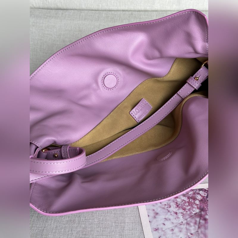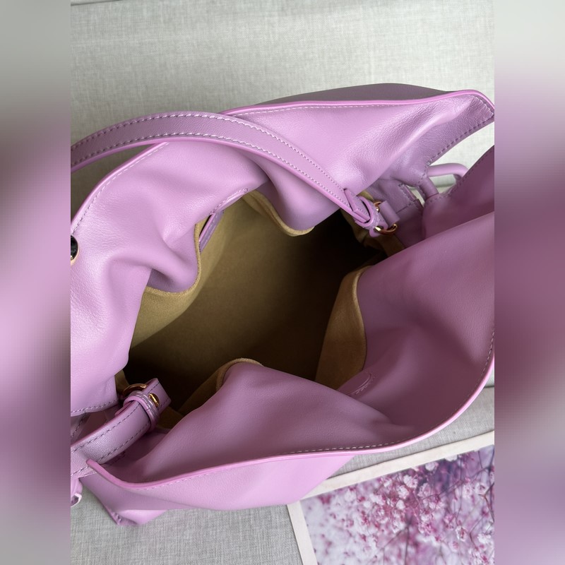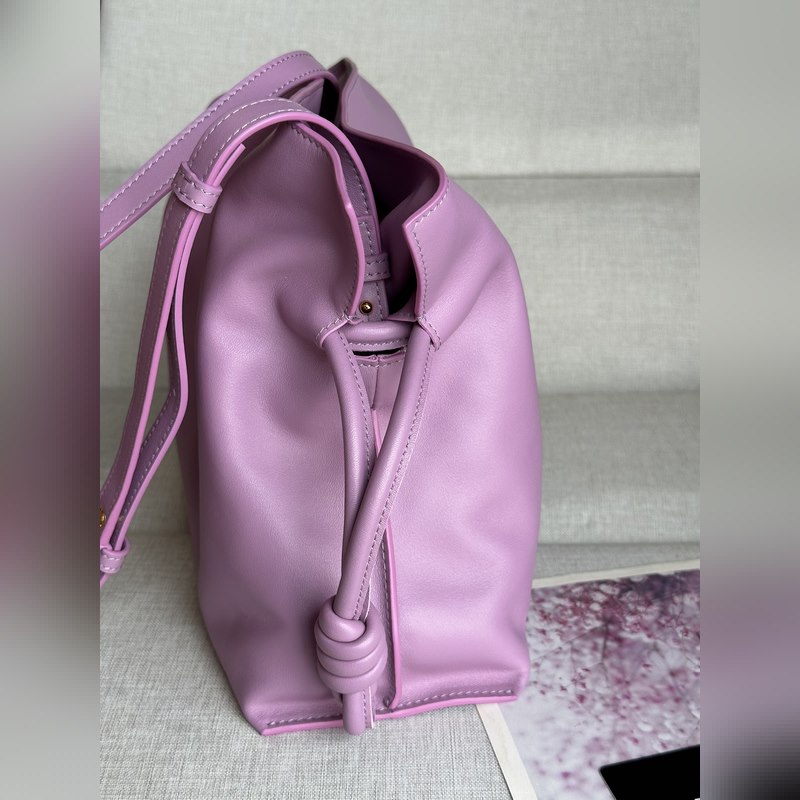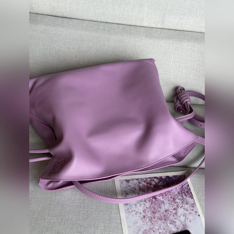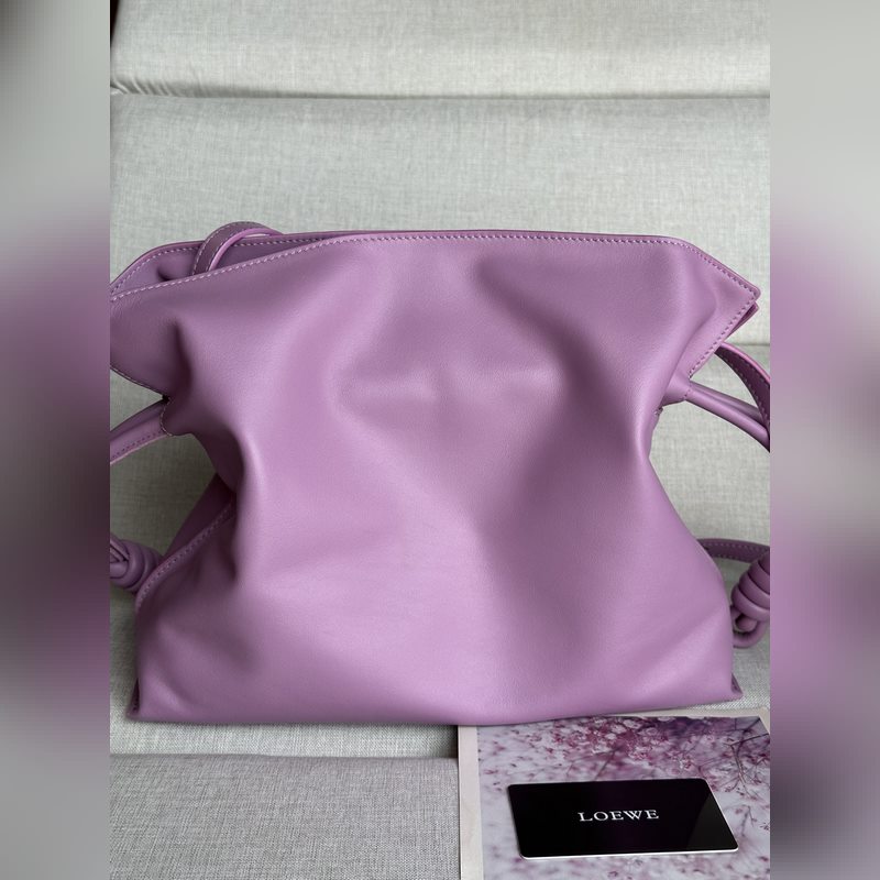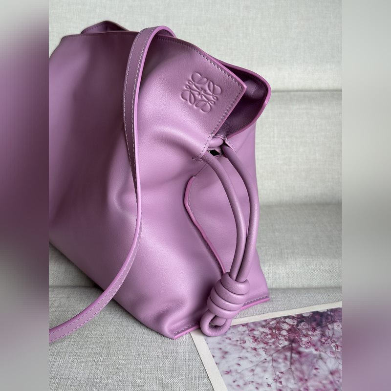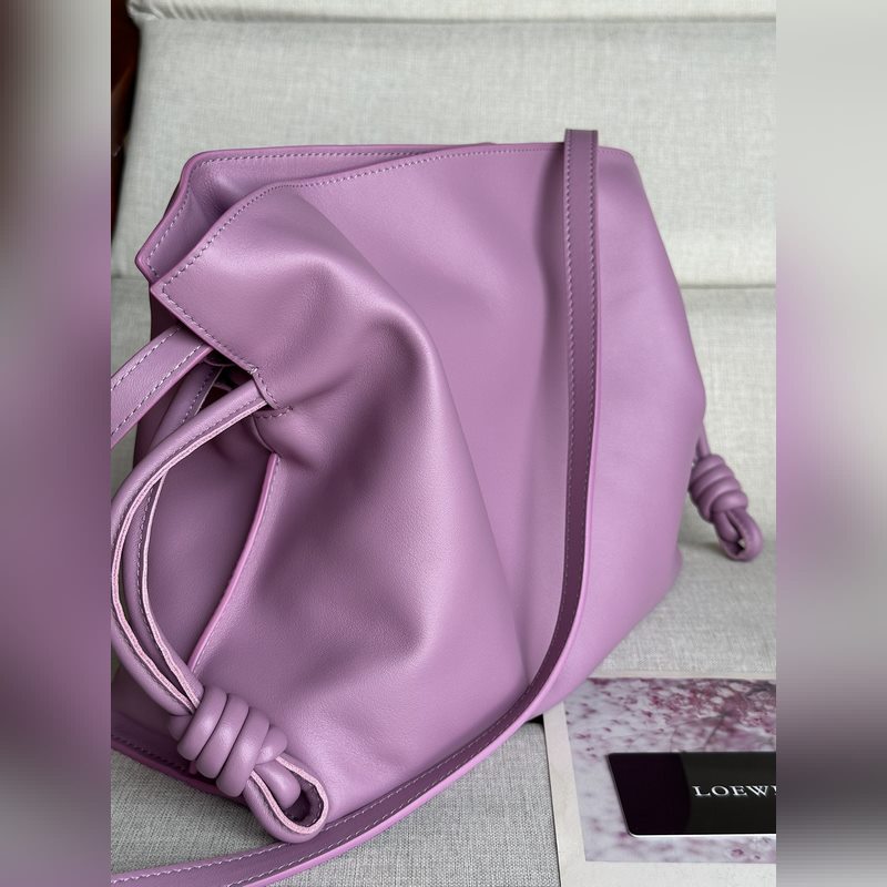 순수한 보라색(벚꽃 보라색)의 천연 가죽 로에베 플라멩코 백 부드럽고