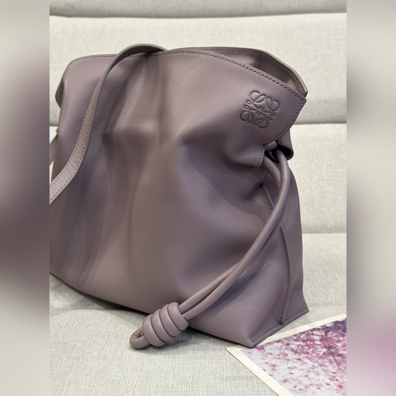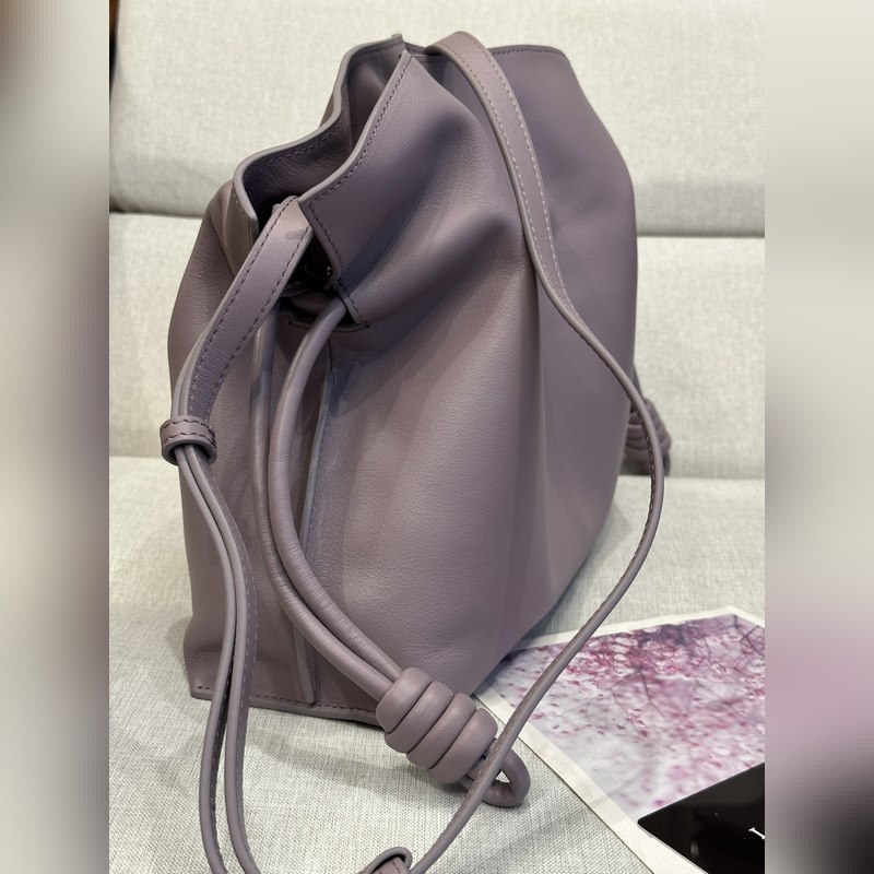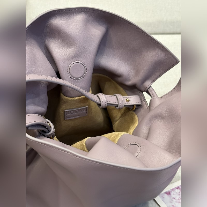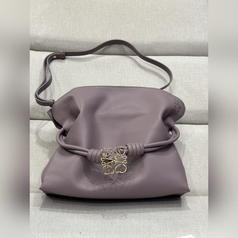 큰 사이즈와 어울리지 않는 오리지널 가죽 브로치 로에베 플라멩코 백 부드럽고 섬세한 송아지 가죽으로 제작되었으며 끈으로 조여지고 상징적인 코일 매듭이 특징입니다. 탈부착 및 길이 조절이 가능한 어깨 스트랩과 자석 걸쇠가 있어 어깨에 메거나 크로스 바디로 착용하거나 손에 들 수 있습니다. 스웨이드 소가죽 안감. 30-24.5-10.5 모델 11046A