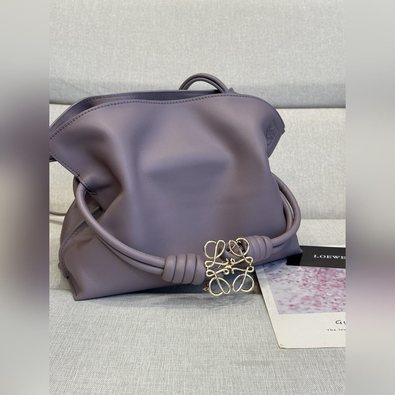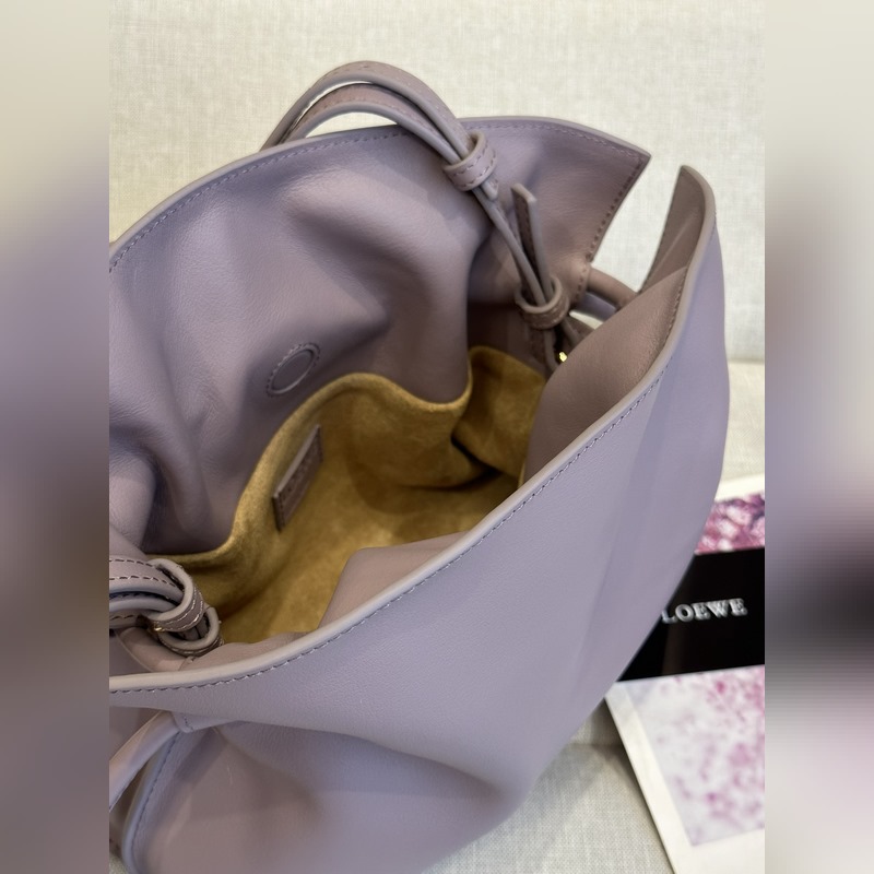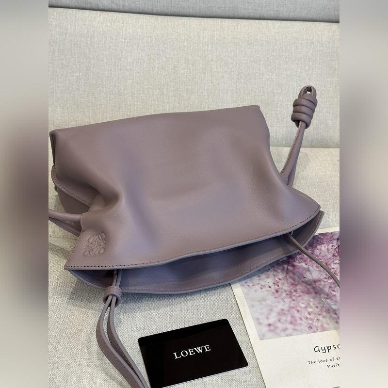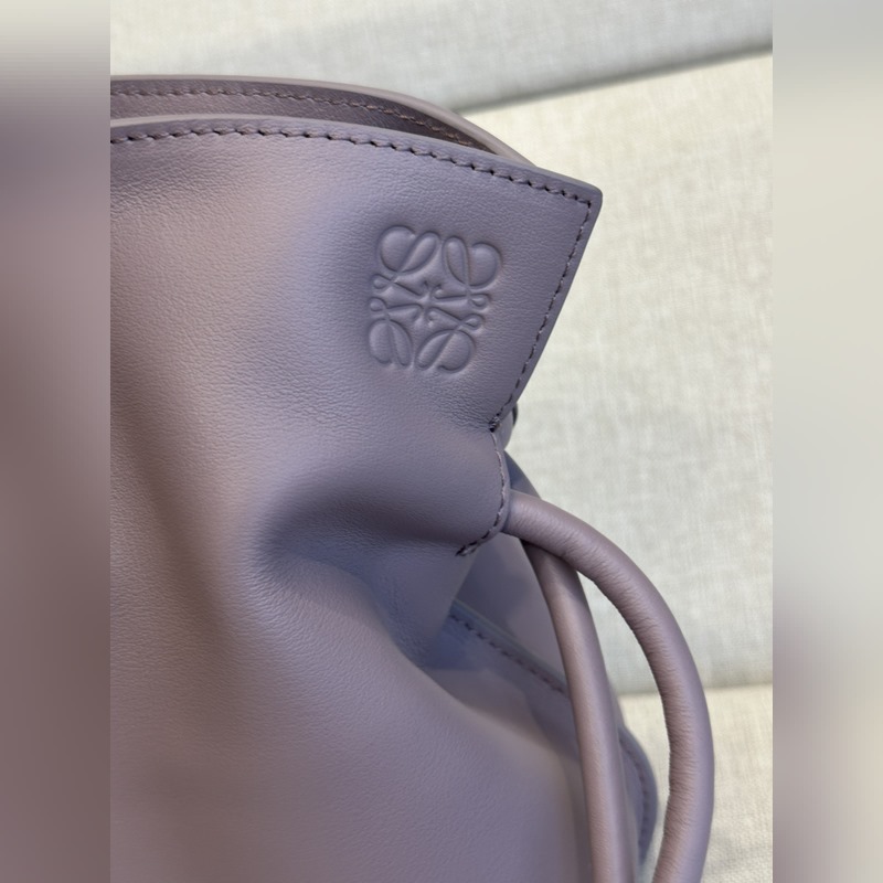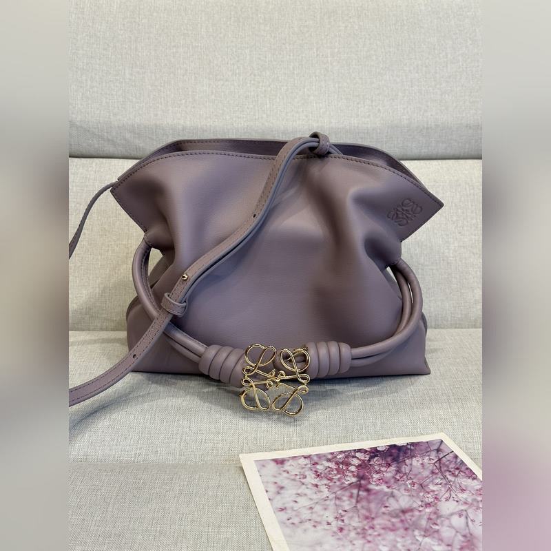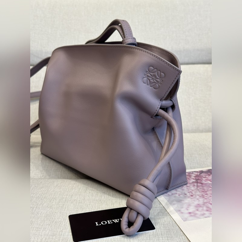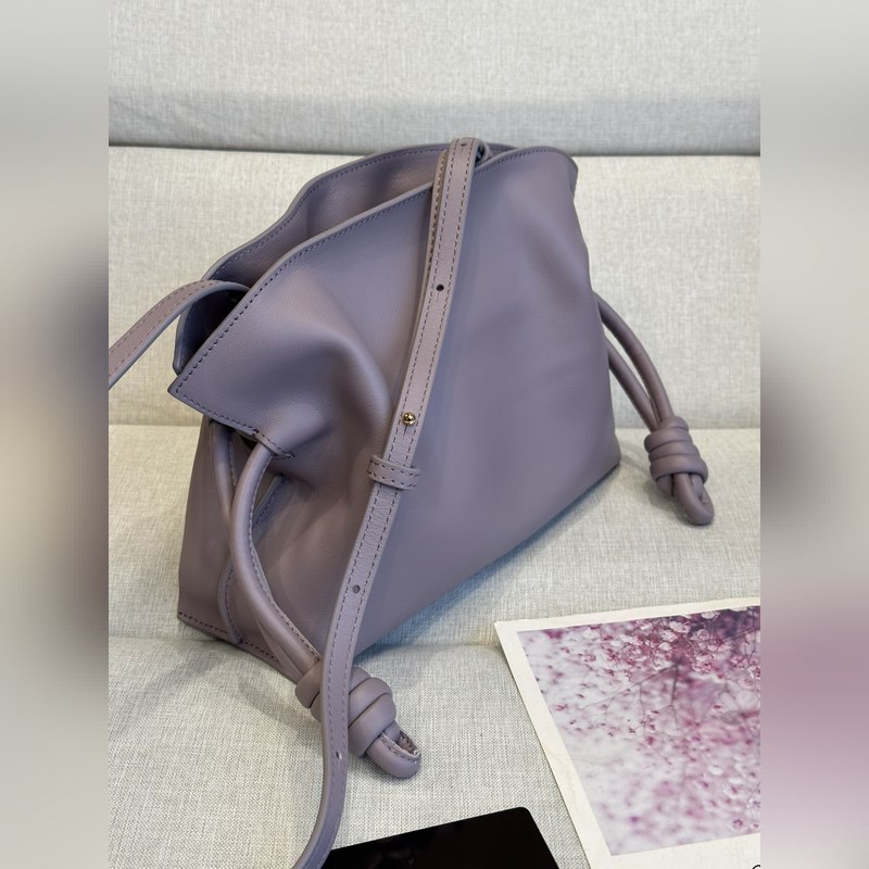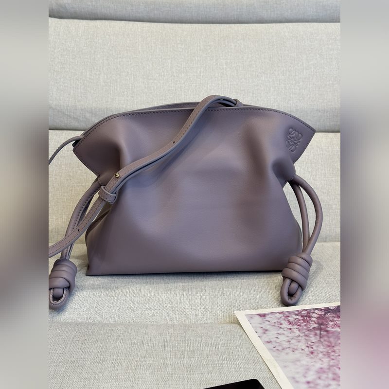 진짜 11046s 회색-보라색 금속 추가 주문 로에베 미니 플라멩코 매듭 가방으로도 알려져 있습니다. 부드럽고 고운 송아지 가죽으로 제작되었으며 조일 수 있는 끈과 상징적인 코일 매듭이 특징입니다. 어깨에 메거나 크로스 바디로 메거나 손에 들 수 있습니다. 탈부착 및 길이 조절이 가능한 어깨 스트랩. 자석 걸쇠 잠금. 스웨이드 소가죽 안감. 23-18-9cm