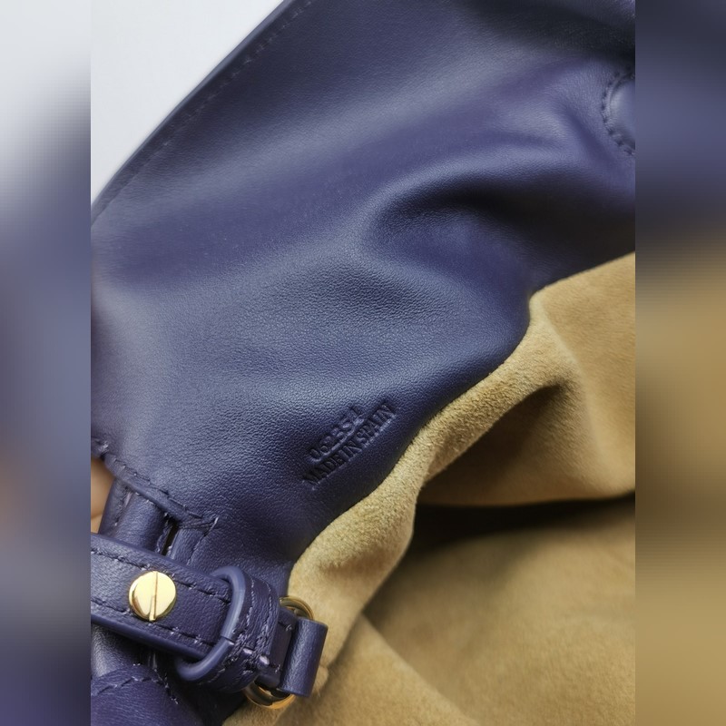 진품 미니 다크 퍼플 로에베 미니 11046s 플라멩코 매듭 주머니로도 알려져 있습니다. 부드럽고 고급스러운 송아지 가죽으로 제작되었으며 조일 수 있는 끈과 상징적인 코일 매듭이 특징입니다. 어깨에 메거나 크로스 바디로 메거나 손에 들고 사용할 수 있습니다. 탈부착 및 길이 조절이 가능한 어깨 스트랩. 자석 걸쇠. 스웨이드 소가죽 안감. 사이즈 23-18