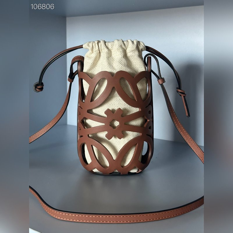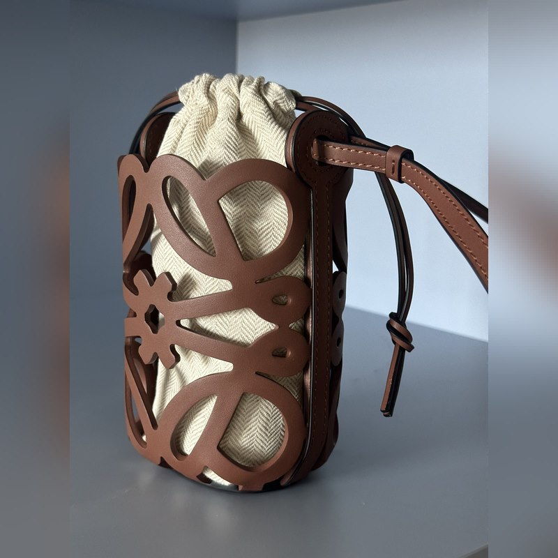 오리지널 가죽 로에베 오픈워크 휴대폰 케이스. 3개월의 배송 기간을 거쳐 생산하는 것이 얼마나 어려운 일인지 상상할 수 있습니다. 모델 922. 크기 20-12-6 어깨끈 길이 100cm