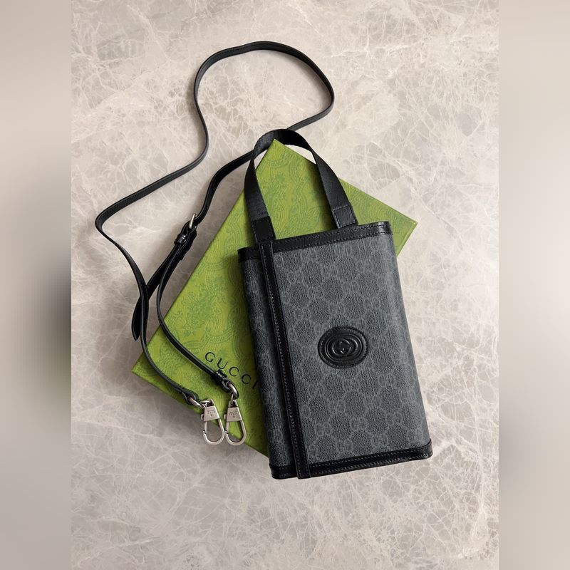최신 구찌 부티크와 함께! 인터로킹 더블 G 클러치 백 타원형 인터로