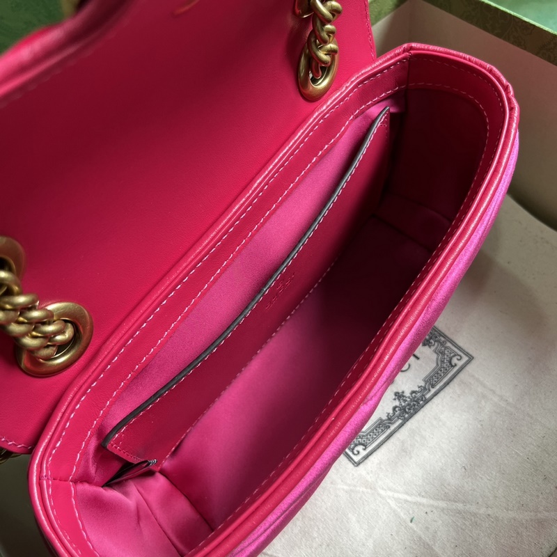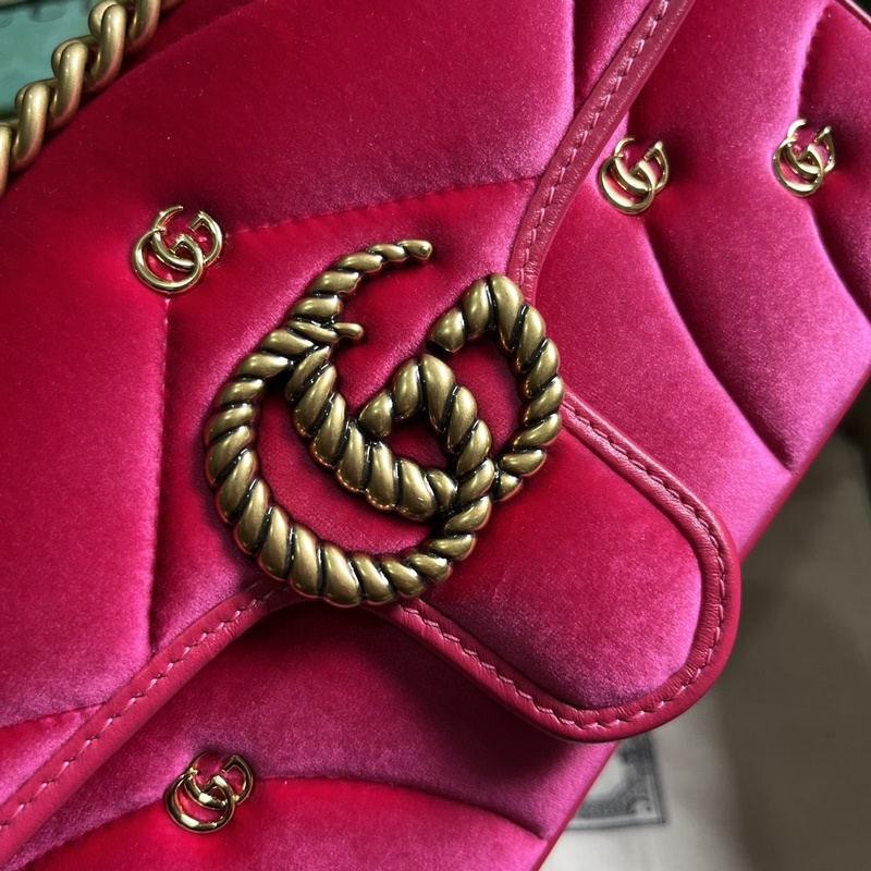 GG 마몽트 미니 숄더백. 이 GG 마몽트 미니 숄더백은 클래식한 가방 형태에 부드러운 퀼팅을 더한 디자인으로 작은 GG 스터드가 강렬한 악센트를 더합니다. 톤온톤 가죽 파이핑이 고급스러운 핑크 색상을 보완하여 화려한 시즌을 위한 무대를 마련합니다. 핑크색 V자형 퀼팅 벨벳 핑크색 가죽 파이핑 골드톤의 부속품 공식 웹사이트 전용 작은 더블 G 리벳 더블 G 슬라이딩 체인은 55cm 높이의 어깨 스트랩 또는 30cm 높이의 상단 손잡이로 조절 가능. 크로스 바디 백으로도 사용 가능. 스냅 버튼 플랩 무게: 약 0.6kg. 모델: 446744. 크기: 22(가로) x 13(세로) x 6cm(깊이) 색상: 핑크/벨벳. 이탈리아 디자인