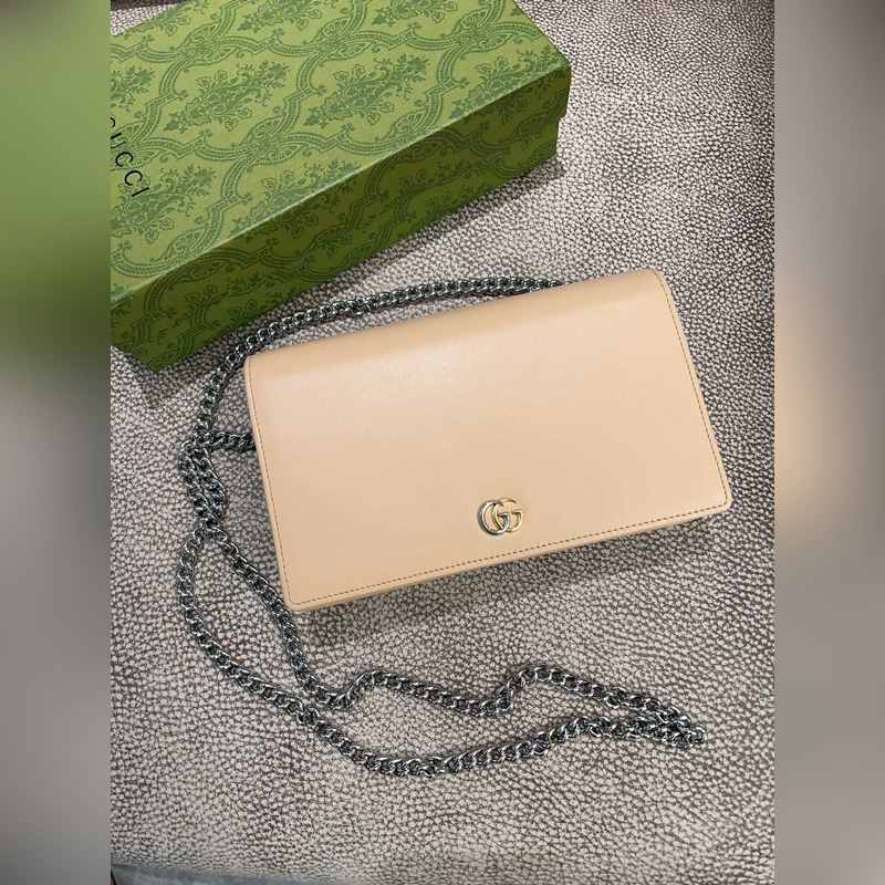 구찌의 최신 체인 백은 오리지널 공장 송아지 가죽 장식과 투톤 클래식 더