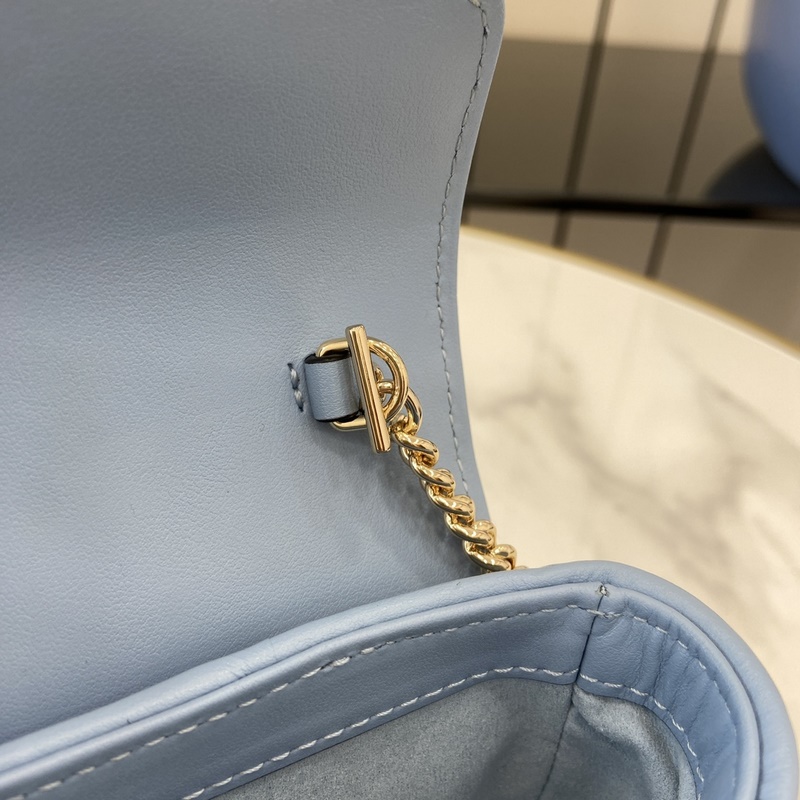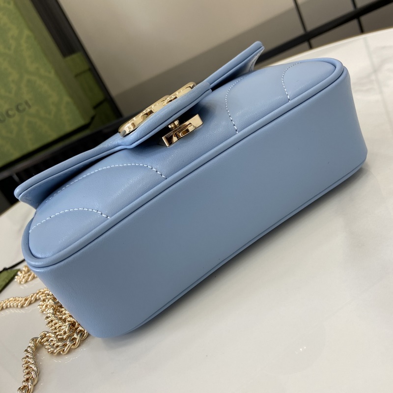 GG Marmont 시리즈 울트라 미니 핸드백. GG Marmont 시리즈는 가볍고 우아한 색조의 섬세한 가죽을 사용하여 초가을의 매력과 스타일을 발산합니다. 이 초미니 핸드백은 퀼팅 V자형 특허 가죽으로 제작되었으며 밝은 금색 톤의 액세서리가 세련된 하늘색 실루엣과 대비를 이루며 디자인의 독창성을 보여줍니다. 하늘색 퀼팅 V자형 특허 가죽 밝은 금색 톤의 액세서리 새틴 안감 핸드백에 별도로 부착할 수 있는 열쇠 고리 더블 G 체인 숄더 스트랩(높이 60cm) 무게: 약 0.35kg. 모델: 476433. 크기: 10(가로) x 16.5(세로) x 4.5cm(깊이) 색상: 연한 파란색/원래 가죽. 이탈리아 디자인 최대 수용 인원: 아이폰 프로 카드 홀더 립스틱