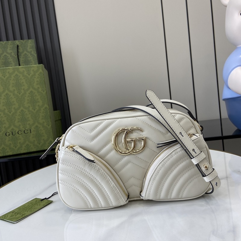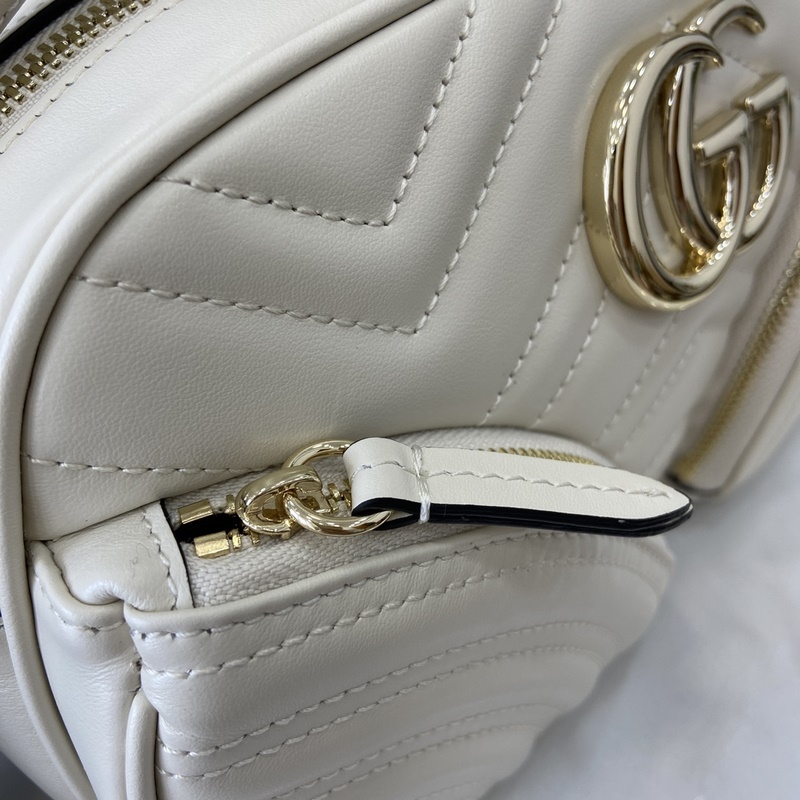 [신제품] GG 마몬트 스몰 숄더백. GG 마몬트 컬렉션은 혁신적인 소재와 장인의 디자인을 결합하여 기하학적 미학과 정교한 질감을 퀼팅 V자형 가죽으로 해석합니다. 두 개의 외부 지퍼 포켓이 디자인에 추가되어 초가을 컬렉션에 또 하나의 걸작을 추가합니다. 구찌 로쏘 안코라 화이트 가죽 안감 라이트 골드 톤 액세서리 길이 조절이 가능한 가죽과 체인 숄더 스트랩이 화이트 스몰 숄더백에 매력을 더합니다. 흰색 퀼팅 V자형 가죽 밝은 금색 톤의 하드웨어 구찌 로쏘 안코라 레드 가죽 안감 더블 G 내부: 오픈 포켓 1개 외부: 앞쪽 모서리마다 지퍼 포켓 2개 길이 조절이 가능한 가죽 및 체인 숄더 스트랩(길이 조절 가능 범위: 126cm~134cm) 길이 조절이 가능한 가죽 및 체인 숄더 스트랩(길이 조절 가능 범위: 58cm~62cm) 지퍼 잠금 무게: 약 0.5kg. 모델: 798715. 크기: 24.5cm x 15cm x 9cm. 색상: 흰색/천연 가죽. 아이폰 프로 맥스/플러스 작은 지갑 립스틱에 딱 맞습니다.