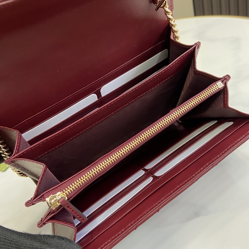 GG Marmont 퀼팅 미니 백. 구찌의 클래식한 소형 액세서리는 브랜드의 진화하는 미학에 새로운 생명을 불어넣고 있습니다. 2025 봄/여름 컬렉션의 하이라이트인 가죽 제품 컬렉션은 우아한 버건디 컬러로 선보이며 새 시즌의 도래를 알리는 섬세하고 우아한 색조입니다. 이 GG Marmont 미니 백에서는 같은 톤의 액세서리와 조화를 이루며 눈부신 방식으로 표현됩니다. 부르고뉴 V자형 마텔라세 가죽 부르고뉴 효과 마감의 황동 부속품 흐릿한 패브릭 안감의 더블 G 카드 슬롯 16개와 지폐 수납칸 2개 내부 수납칸 3개 지퍼식 동전 주머니 스냅 버튼 잠금장치 달린 탈착식 체인 숄더 스트랩(길이 60cm). 모델: 474575. 크기: 20(가로) x 13(세로) x 6cm(깊이) 색상: 버건디/천연 가죽. 이탈리아 디자인