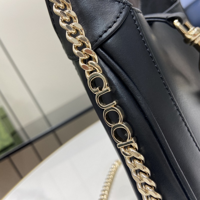 [신제품] 구찌 재키 노트 미니 숄더백. 새로운 재키 노트 백은 브랜드의 크리에이티브 디렉터인 사브리나 데 사르노가 디자인했습니다. 이 제품은 브랜드의 상징적인 재키 컬렉션의 자신감 넘치는 본질을 생생하게 보여주고 새로운 실루엣과 정교한 디테일을 결합하여 이브닝 룩에 이상적인 액세서리를 만들어 냅니다. 가벼운 골드톤의 구찌 레터 체인 스트랩이 달린 후크 앤 아이 잠금 장치는 이 미니 숄더백에 독특하고 세련된 느낌을 줍니다. 검은색 소가죽 골드 톤 하드웨어 가죽 안감 내부: 오픈 포켓 1개 구찌 로고와 자키 노테(Jackie Notte)라는 자필 글자가 장식되어 있음 구찌 레터 체인 숄더 스트랩 각 글자는 수작업으로 고정되어 있음 높이 54cm 후크 앤 루프 잠금장치 무게: 약 0.35kg. 모델: 782889 크기: 19.5(가로) x 18(세로) x 3.5(깊이)cm 색상: 검정색/천연 가죽. 이탈리아어 창조 모델 신장 177cm 아이폰 프로 맥스/플러스 에어팟 카드 홀더 립스틱에 적합