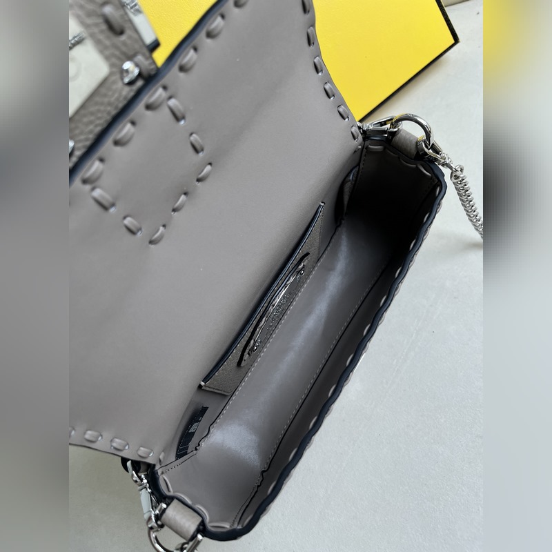 비둘기 회색 바게트 핸드백의 새로운 가족. 수작업으로 만든 수입 소가죽