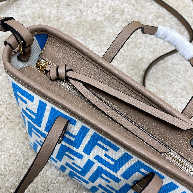 자카드 직물로 제작된 롤 미니 핸드백 쇼핑백은 상징적인 하늘색 FF 패턴