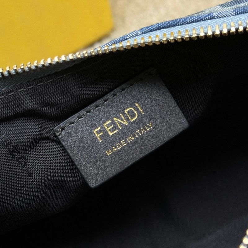 FF 모티프가 있는 하늘색 모조 데님 소재의 미니 크레센트 백. 빈티지