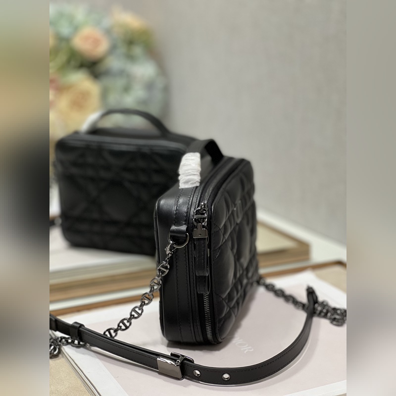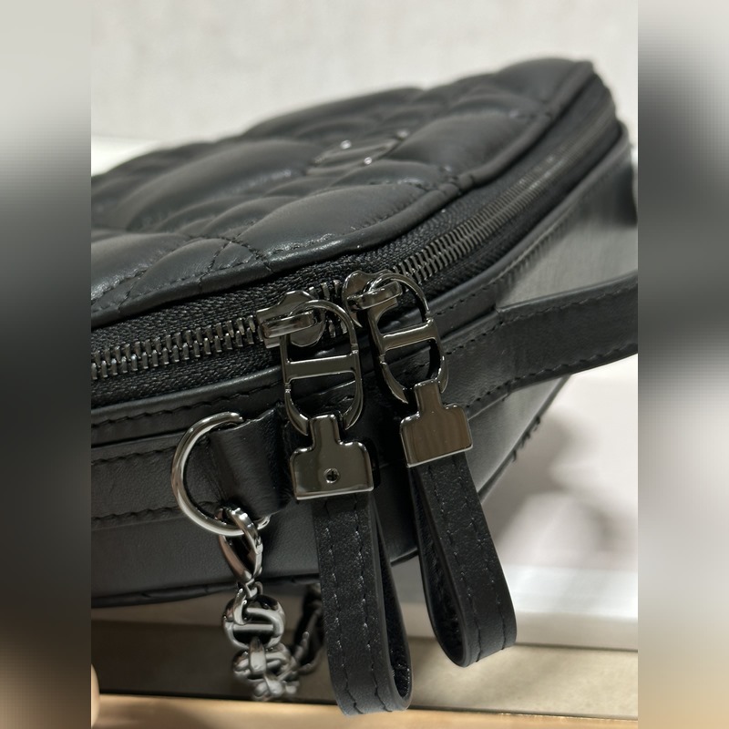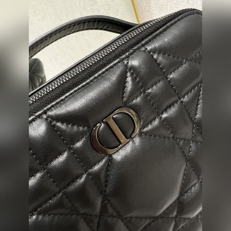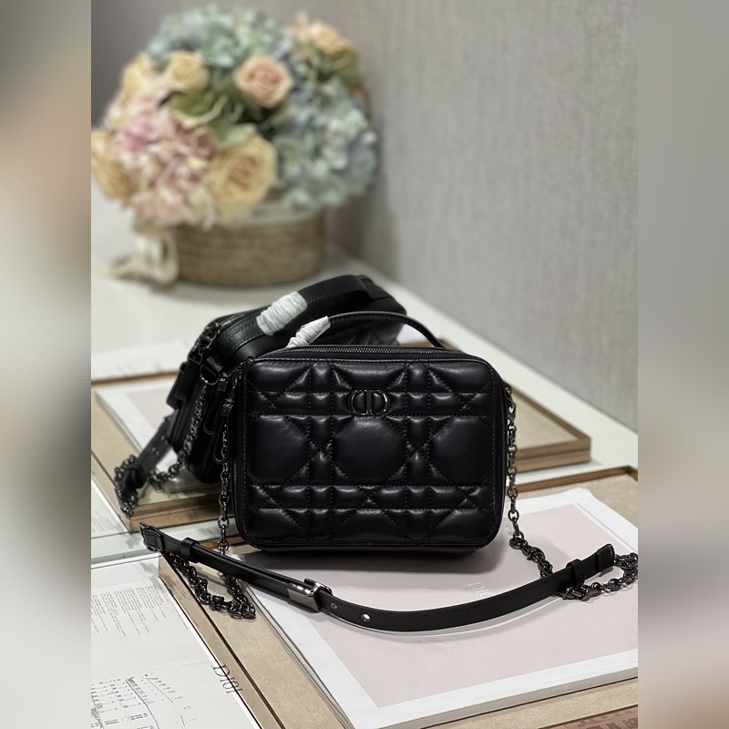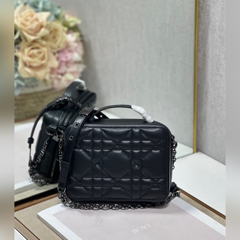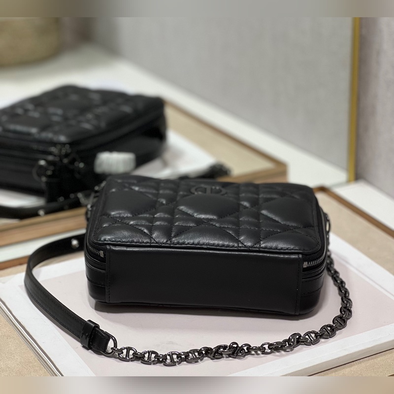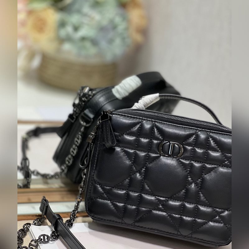 정품 디올 카로 박스형 체인 핸드백 검은색 소가죽으로 제작되었으며 특이