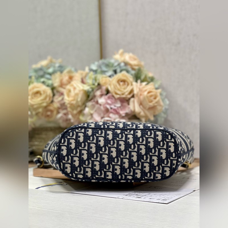 정품 디올 새로운 자수 바구니 가방 블루 D 숄더 스트랩 동전 지갑