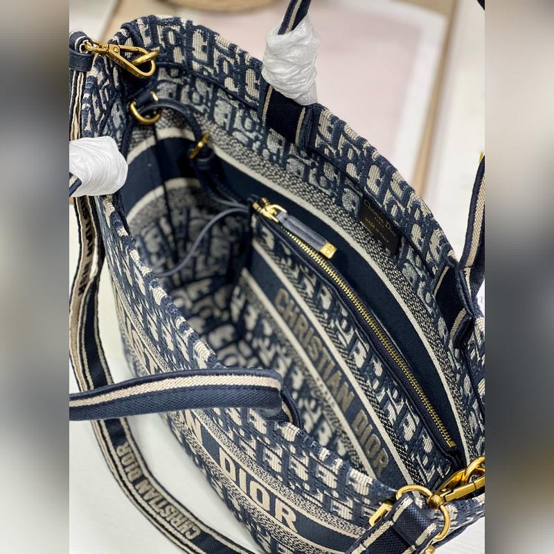 정품 디올 새로운 자수 바구니 가방 블루 D 숄더 스트랩 동전 지갑 이 바구니 가방은 여성용 크리에이티브 디렉터인 마리아 그라치아 치우리(Maria Grazia Chiuri)가 영감을 받아 디올의 미학을 구현한 필수 아이템입니다. 이 가방은 모든 종류의 일상 용품을 담을 수 있으며 D-스트라이프 패턴 자수와 혼합된 바야데르 패턴의 새로운 해석이 더욱 세련된 느낌을 줍니다. 앞면에는 Christian Dior 로고가 장식되어 있어 디올의 정교한 장인 정신을 완벽하게 반영합니다. 모델 번호: 1286 크기: 상단 입구 33cm 하단 길이 20cm 폭 12cm 높이 22cm