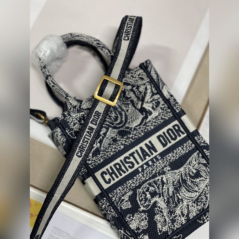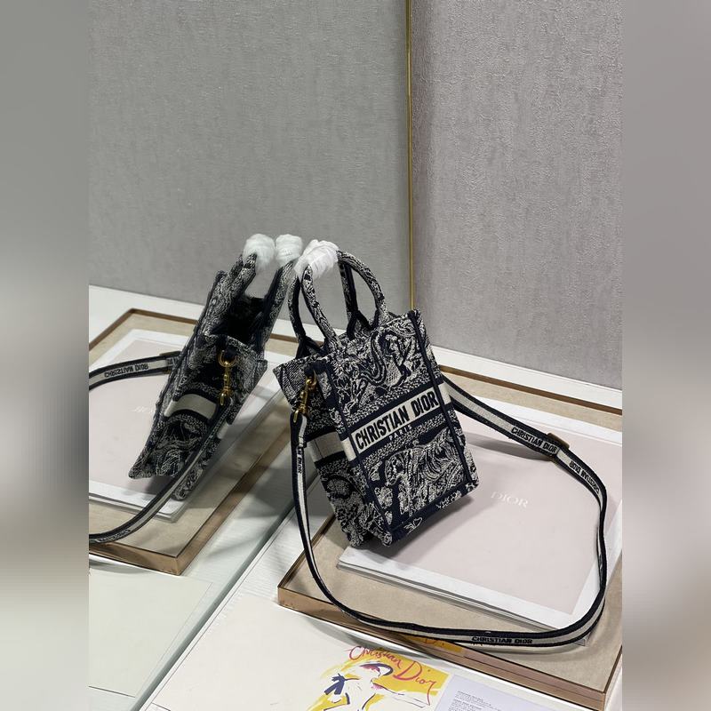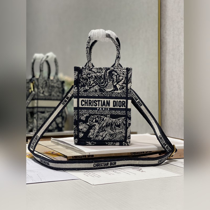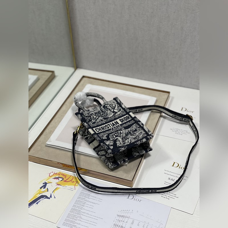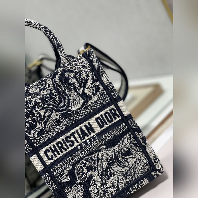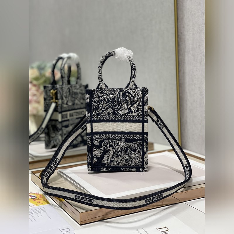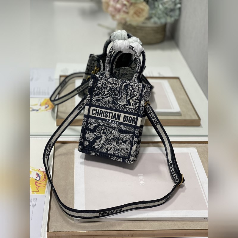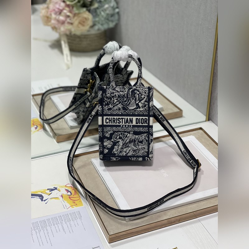 진품 디올 미니 북 토트백 폰 가방 (새로운 블루 타이거) 이 폰 가방은