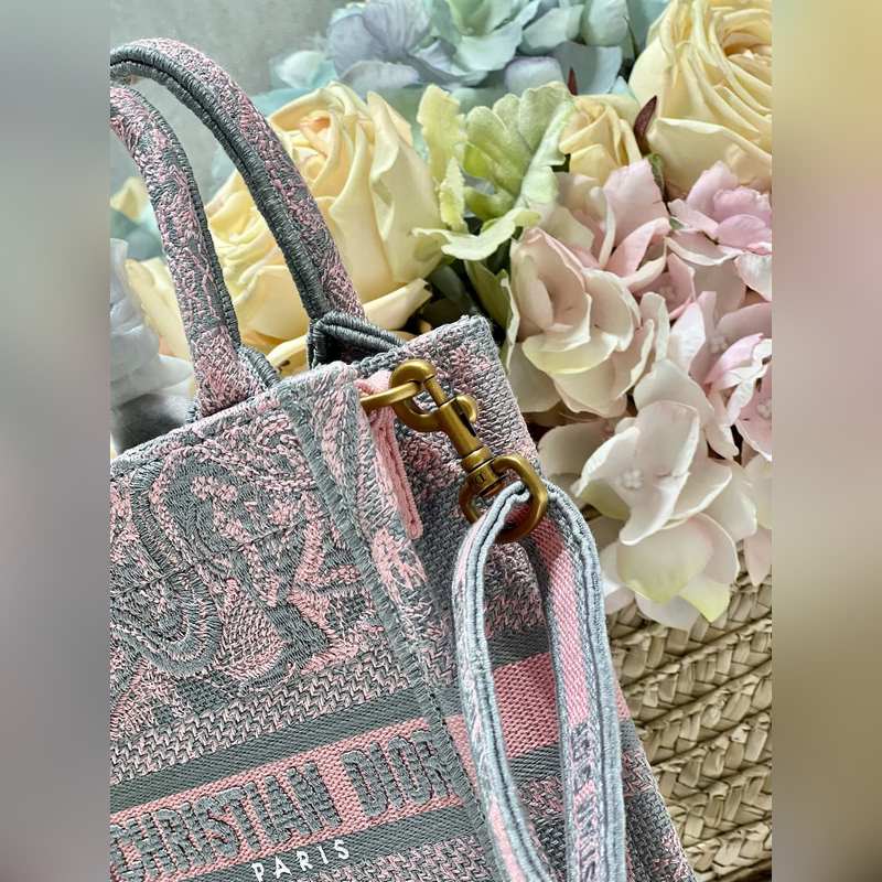 정품 디올 미니 북 토트백 폰 가방 뉴 파운데이션 타이거 이 폰 가방은 마리아 그라치아 치우리(Maria Grazia Chiuri)가 아이코닉한 북 토트(Book Tote) 시리즈를 더욱 풍성하게 만들기 위해 디자인한 이번 시즌 신제품입니다. 디올 아카이브에서 영감을 받은 베이지색 미자 패턴으로 전체를 수놓은 이 가방은 앞면에 있는 CHRISTIAN DIOR PARIS 시그니처로 더욱 돋보이며 디올의 정교한 장인 정신을 여실히 보여줍니다. 미니 버전은 휴대폰과 작은 일상 용품을 넣을 수 있습니다. 조절 및 탈착이 가능한 수놓은 어깨 스트랩이 있어 손으로 들거나 어깨에 메거나 몸에 걸칠 수 있어 현대적이고 패셔너블합니다. 앞면에 CHRISTIAN DIOR PARIS 로고가 자수되어 있습니다. 탈부착이 가능하고 길이 조절이 가능한 자수 어깨 스트랩 모든 아이폰 모델 지원 크기: 13.5 × 18 × 6.5cm 모델: 9026