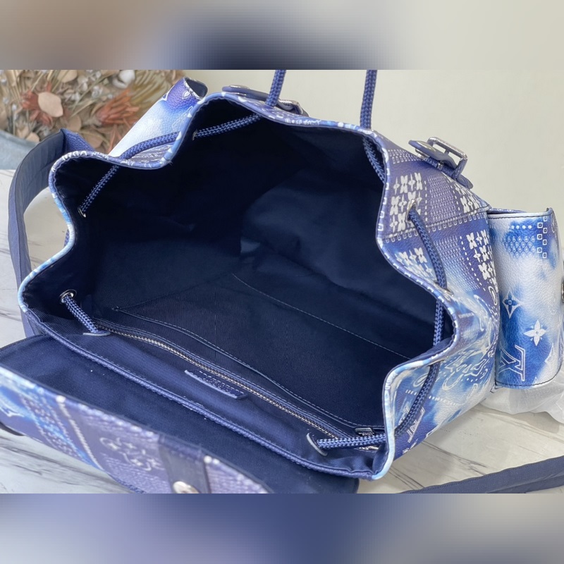 LV 아이템 번호: M20554 소형 배낭 클래식한 여행용 백팩의 딱딱한 질감이 그대로 유지되었으며 이번에는 소가죽에 표백된 실크 스카프 패턴을 입혀 눈길을 사로잡고 모노그램 요소를 재해석했습니다. 충분한 공간은 드로스트링과 스냅 버튼 가죽 플랩으로 닫을 수 있습니다. 크기: 38 x 44 x 21cm 품번: SG96181600