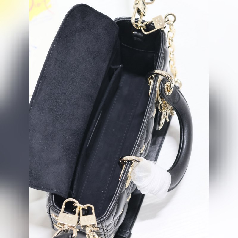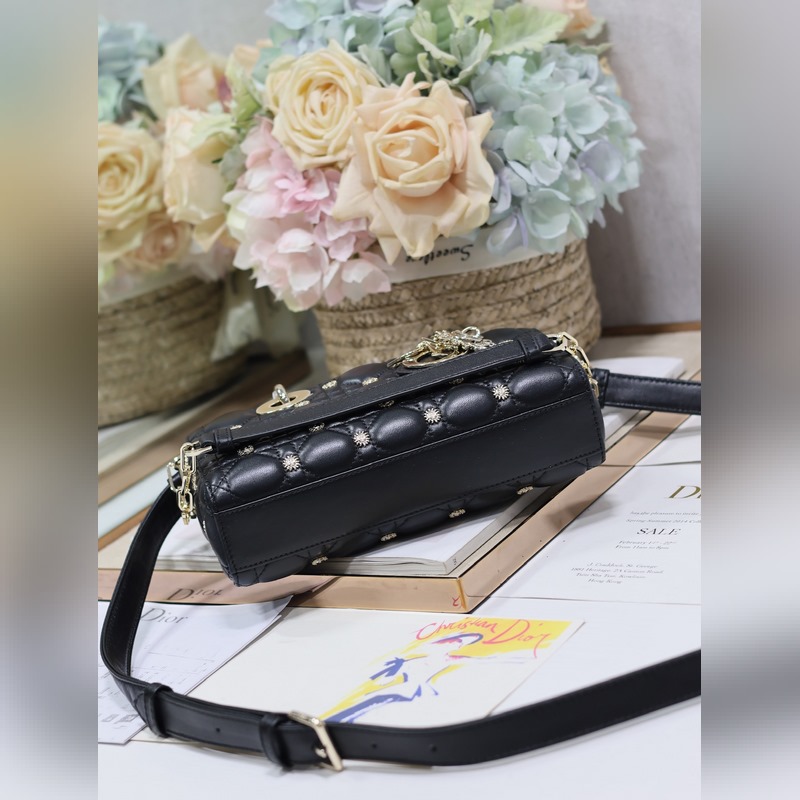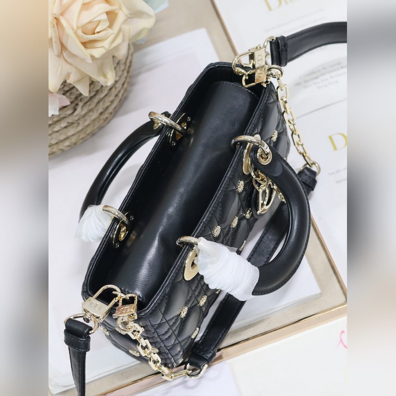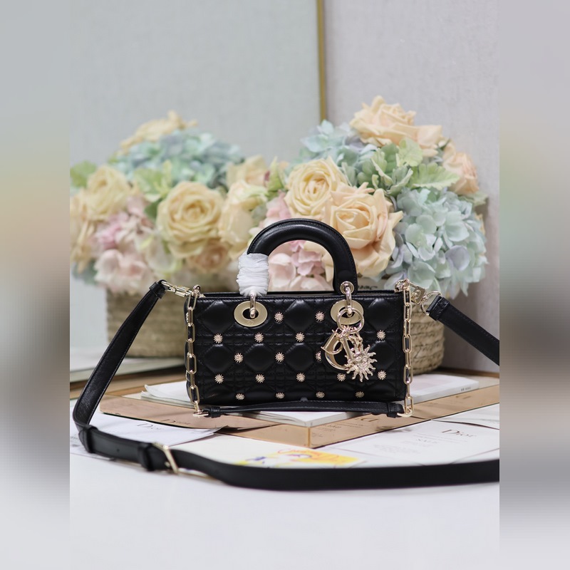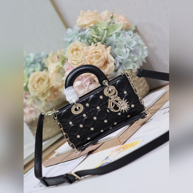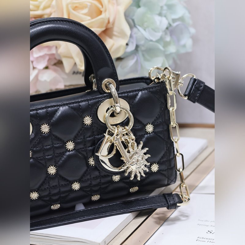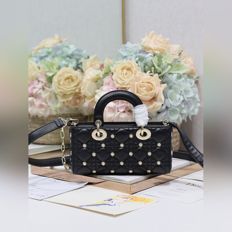진짜 높은 버전 작은 LADY D-JOY 가방 해바라기 블랙 이 레이