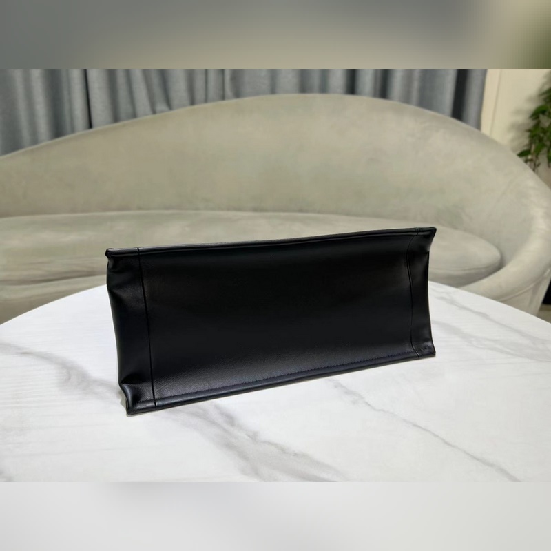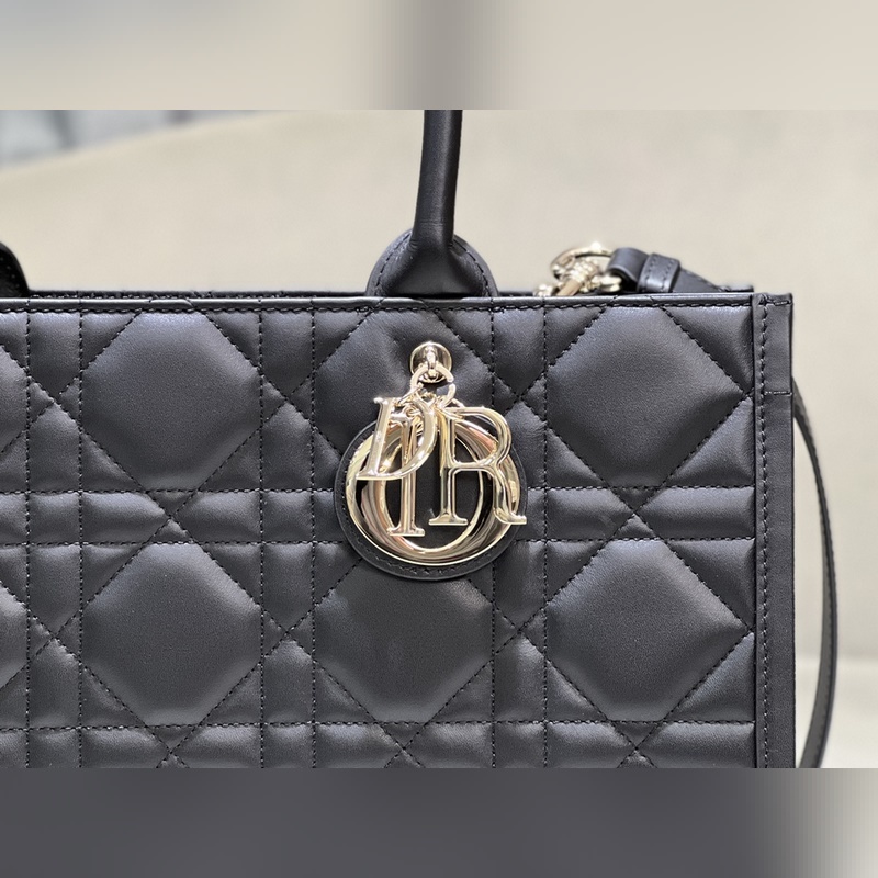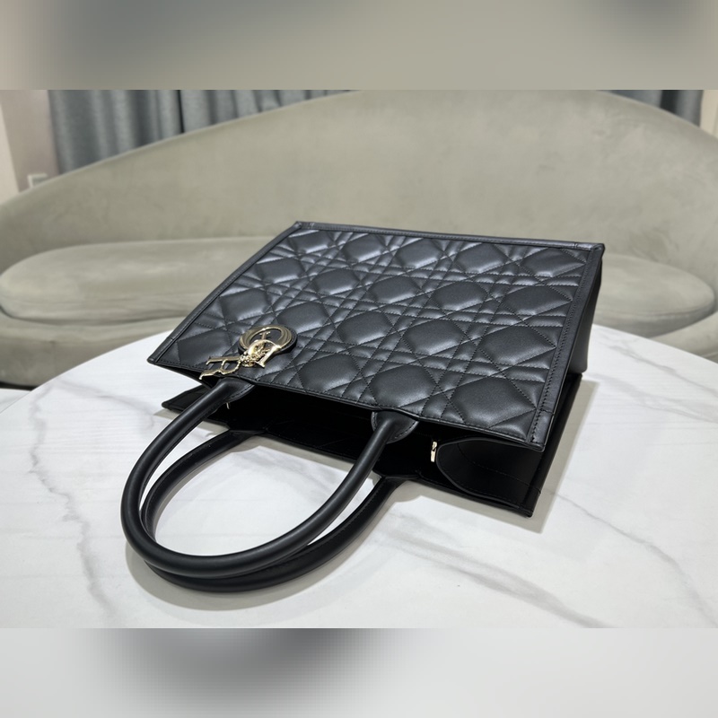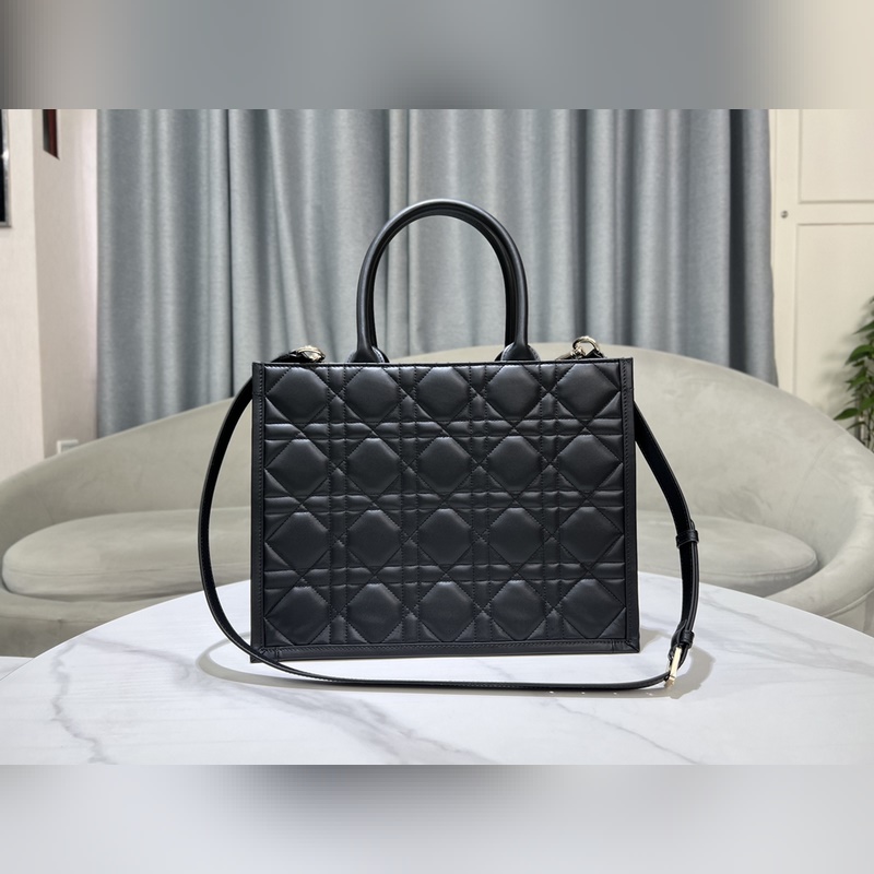 중간 [가죽 전체 + 긴 어깨끈] 마리아 그라치아 치우리(Maria Grazia Chiuri)가 디자인한 책 토트백은 디올의 우아한 클래식 스타일을 보여주는 좋은 예입니다. 검은 소가죽으로 제작된 이 가방은 특대 사이즈의 라탄 무늬와 손잡이에 가벼운 금색 마감의 금속 D.I.O.R 참이 특징입니다. 내부는 캐시미어와 가죽으로 안감이 되어 있으며 지퍼가 달린 주머니와 패치 포켓이 있어 일상 용품을 정리할 수 있습니다. 가볍고 실용적인 소형 모델은 디올의 장인 정신이 깃들어 있으며 길이 조절이 가능한 탈착식 어깨끈이 있어 손으로 들거나 어깨에 메고 다닐 수 있습니다. 탈부착이 가능하고 길이 조절이 가능한 가죽 어깨끈 내부 지퍼 포켓 내부 패치 포켓 2개 먼지 봉투 포함 이탈리아에서 제작 1286 크기: 36.5cm