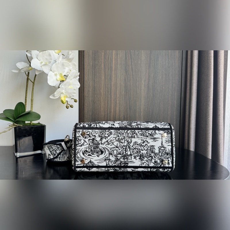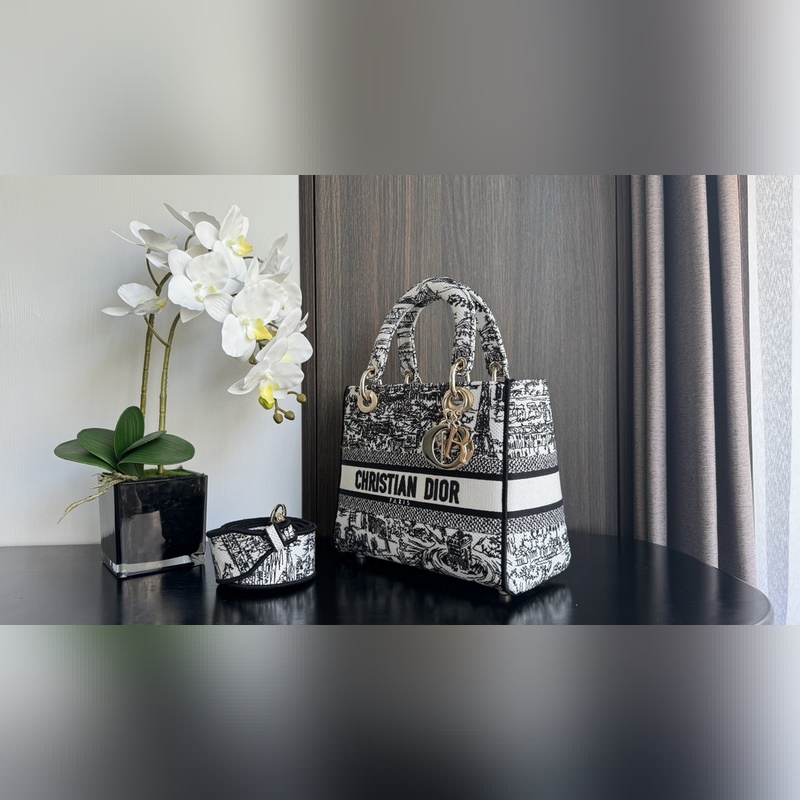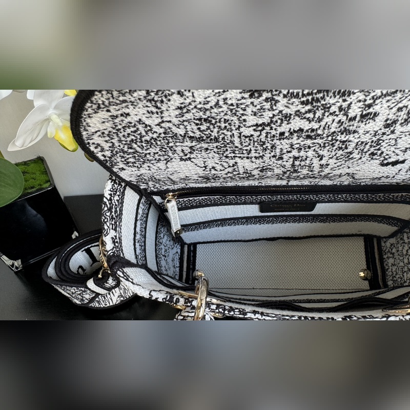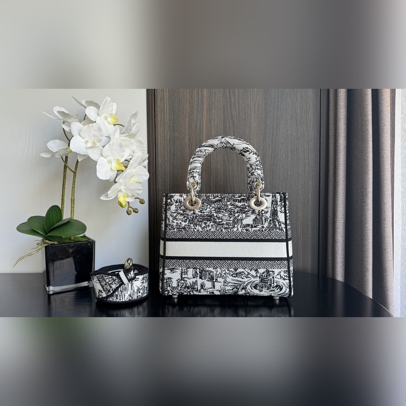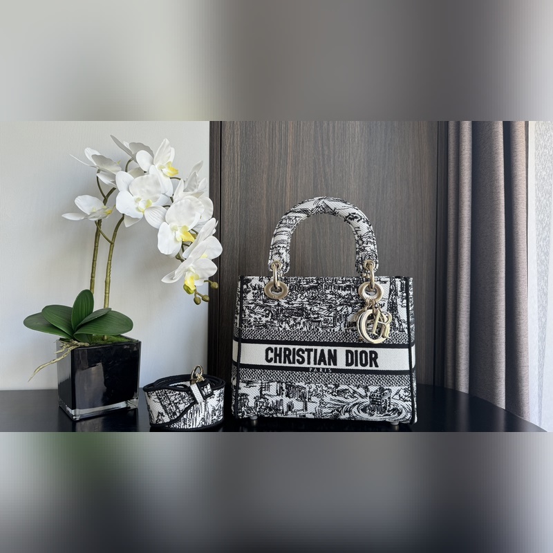 진짜 다이애나 5패널 자수 이 레이디 D-라이트 백은 클래식한 우아함과 세련된 외관을 결합한 제품입니다. 가방 전체에 피에트로 루포가 디자인한 흰색 바탕에 여러 가지 색상의 디올 사죵 왈리버 패턴이 수놓아져 있어 겨울의 꽃과 식물을 연상케 하고 목가적인 매력이 넘칩니다. 은은한 골드 마감의 금속 디올 참이 절묘한 실루엣에 생동감을 더합니다. 중간 사이즈 모델은 손으로 들거나 탈부착이 가능한 넓은 수놓은 어깨끈을 이용해 어깨에 메고 다닐 수 있습니다. 크기: 24 x 20 x 11cm(가로 x 세로 x 높이) 6605