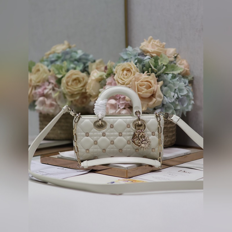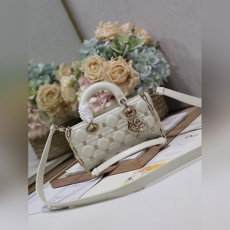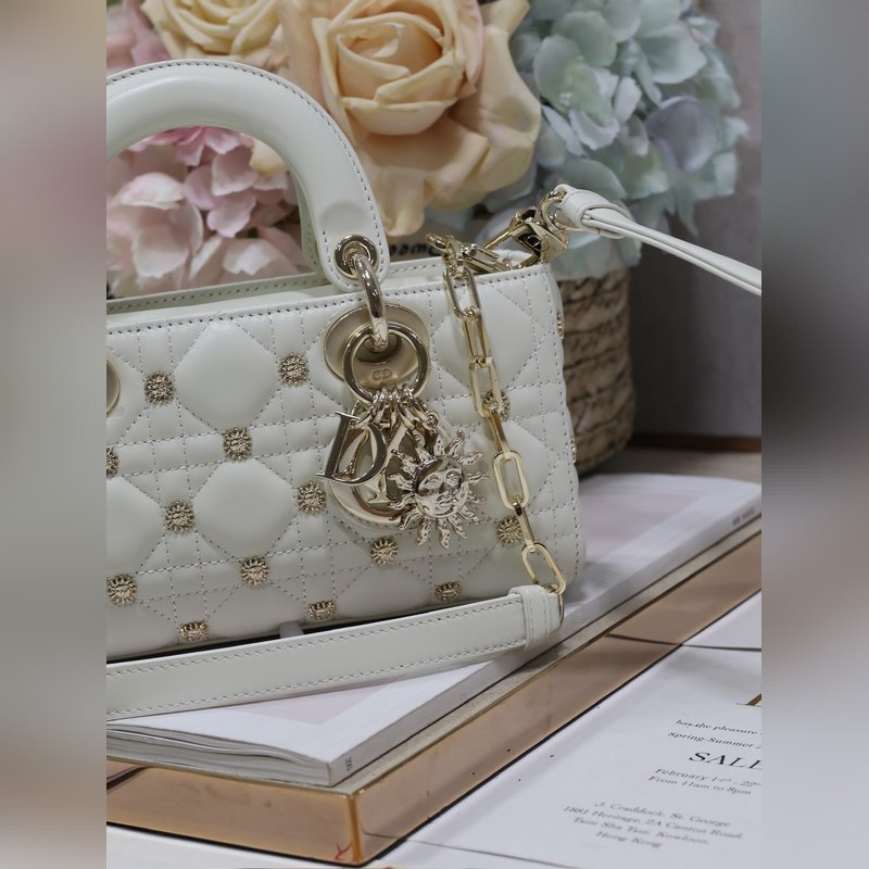 진짜 높은 버전 작은 LADY D-JOY 백 해바라기 화이트 이 레이