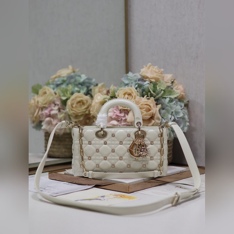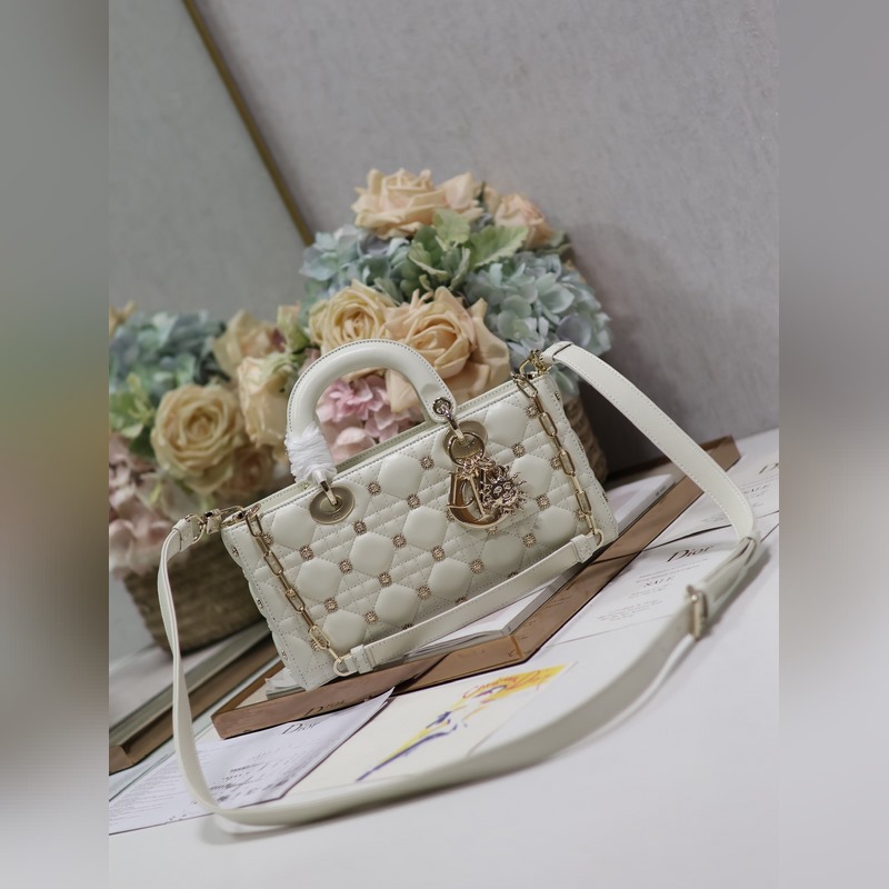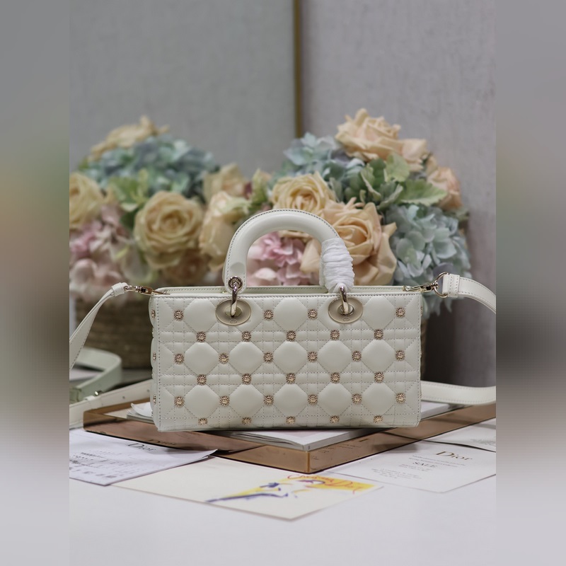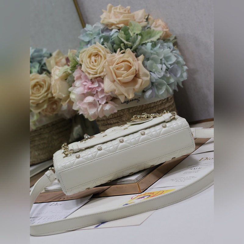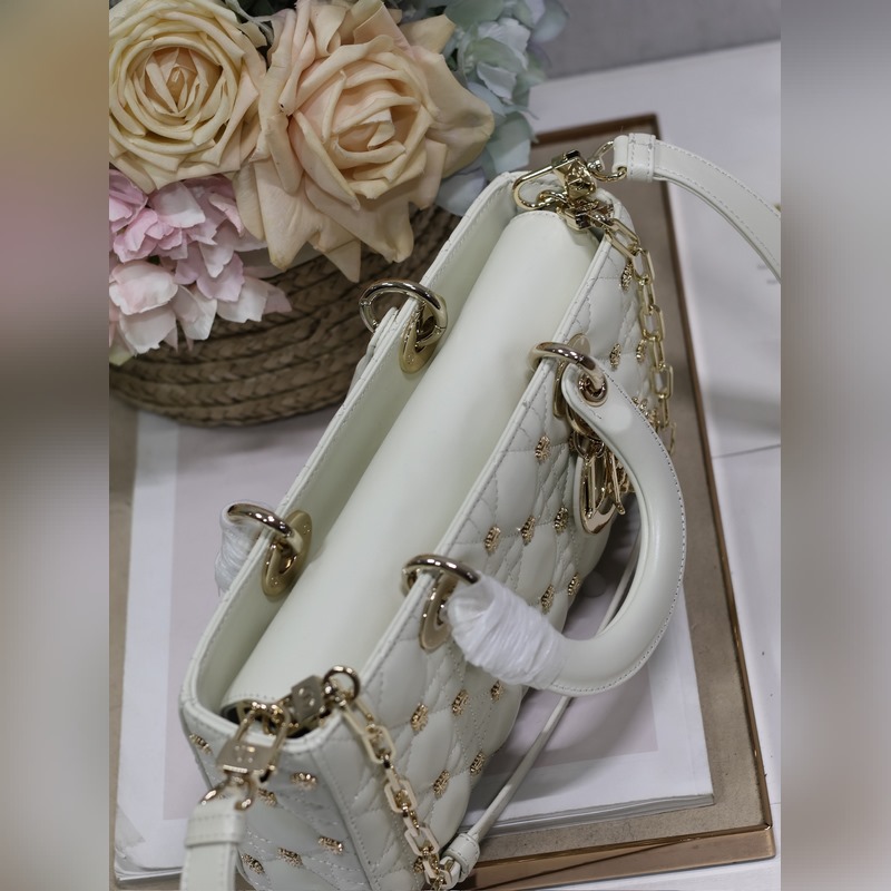 진짜 높은 버전 미디엄 레이디 D-조이 백 해바라기 화이트 이 레이디