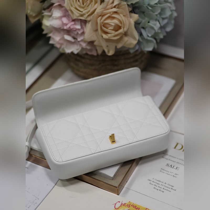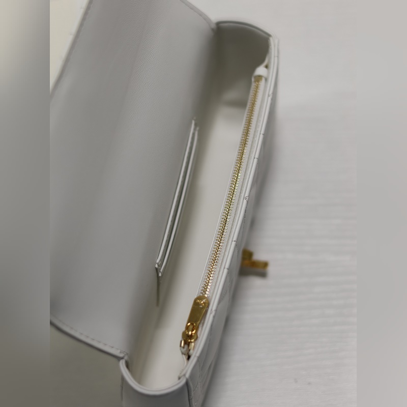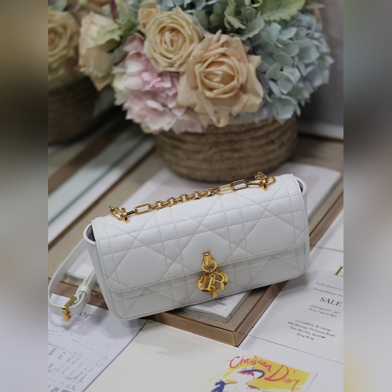 진짜 높은 버전 Dior Miss Daisy 미니 백 ?화이트? 이 미스 데이지 미니 백은 우아함과 실용성을 겸비하고 있습니다. 흰색 양가죽으로 만들어졌으며 클래식한 오버사이즈 라탄 체크무늬 탑스티치로 장식되어 있습니다. 앞면 덮개는 실용적인 D.I.O.R. 참으로 닫을 수 있습니다. 실용적이고 스타일리시한 이 가방에는 지퍼가 달린 포켓과 카드 슬롯이 내장된 수납공간이 있어 일상적으로 사용하는 물건을 모두 수납할 수 있습니다. 낮과 저녁 모두 착용할 수 있는 이상적인 동반자입니다. 가죽 스트랩으로 장식된 체인을 이용해 손으로 들거나 어깨에 메거나 몸에 걸칠 수 있습니다. 앞면 D.I.O.R. 매력 플랩 여밈 지퍼가 달린 내부 수납공간 카드 슬롯 3개 모델: 330 크기: 22 x 12.5 x 4cm (가로 x 세로 x 높이) 휴대폰 1개 카드 지갑 1개 립스틱을 넣을 수 있습니다.