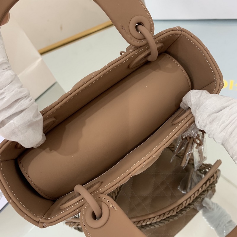 순색 레이디 디올 라탄 매트 송아지 가죽 플랩 핸드백 하드웨어 체인