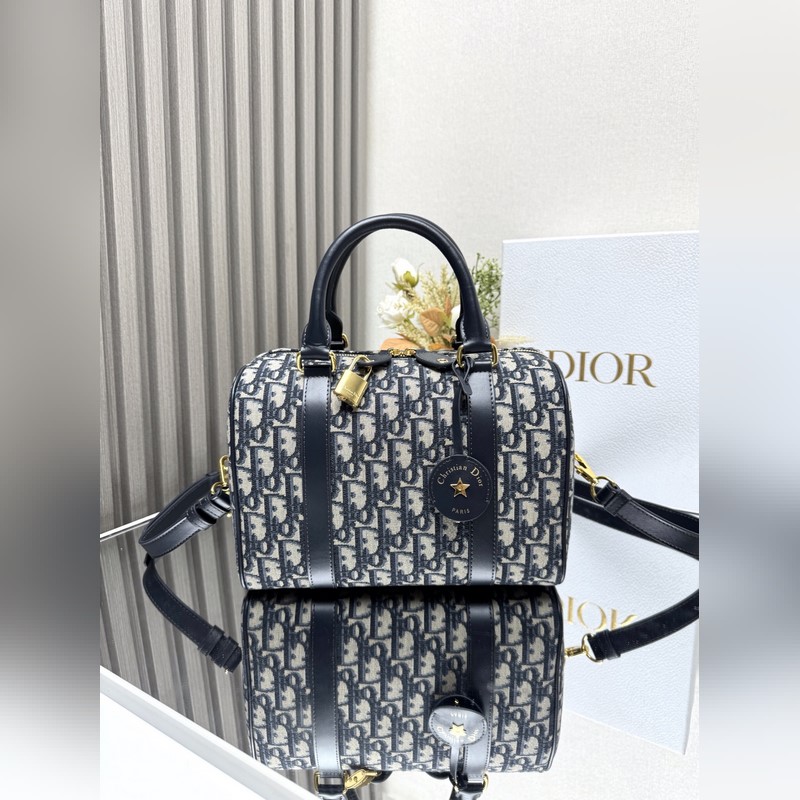 진짜 높은 버전 새로운 디올 그루브 25cm 핸드백 블루 오블리크 이 Dior Groove 25 핸드백은 2024년 겨울 기성복 컬렉션의 신제품으로 독특한 스타일을 위해 금색 별 장식이 돋보입니다. 열쇠 고리로 지퍼 자물쇠를 열 수 있고 넉넉한 수납 공간에는 슬립 포켓과 지퍼 포켓이 있어 다양한 일상 용품을 보관할 수 있습니다. 가죽 소재의 상단 손잡이와 길이 조절이 가능한 탈착식 어깨 끈이 함께 제공됩니다. 모델: 1365 25x19x16cm