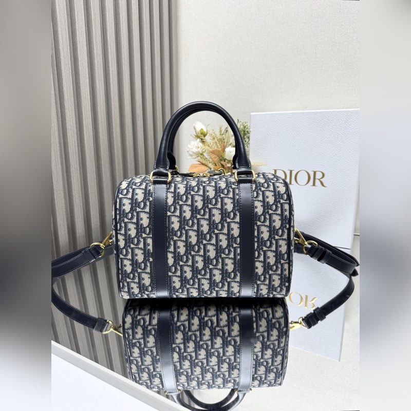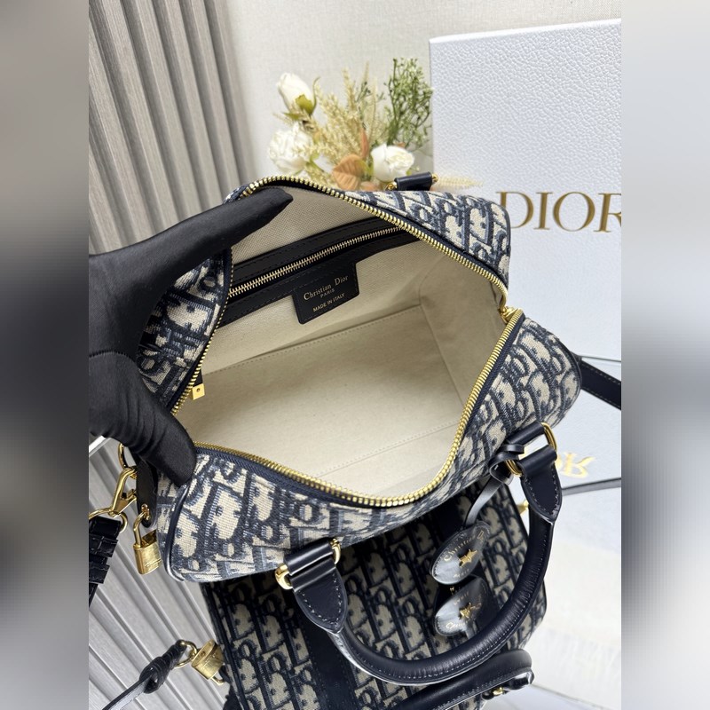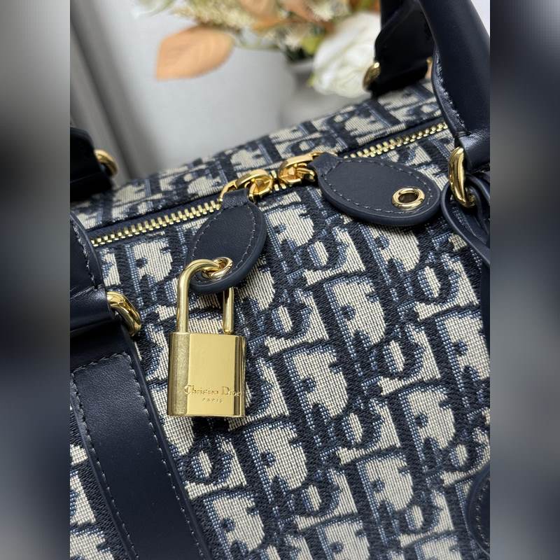 진짜 높은 버전 새로운 디올 그루브 25cm 핸드백 블루 오블리크 이